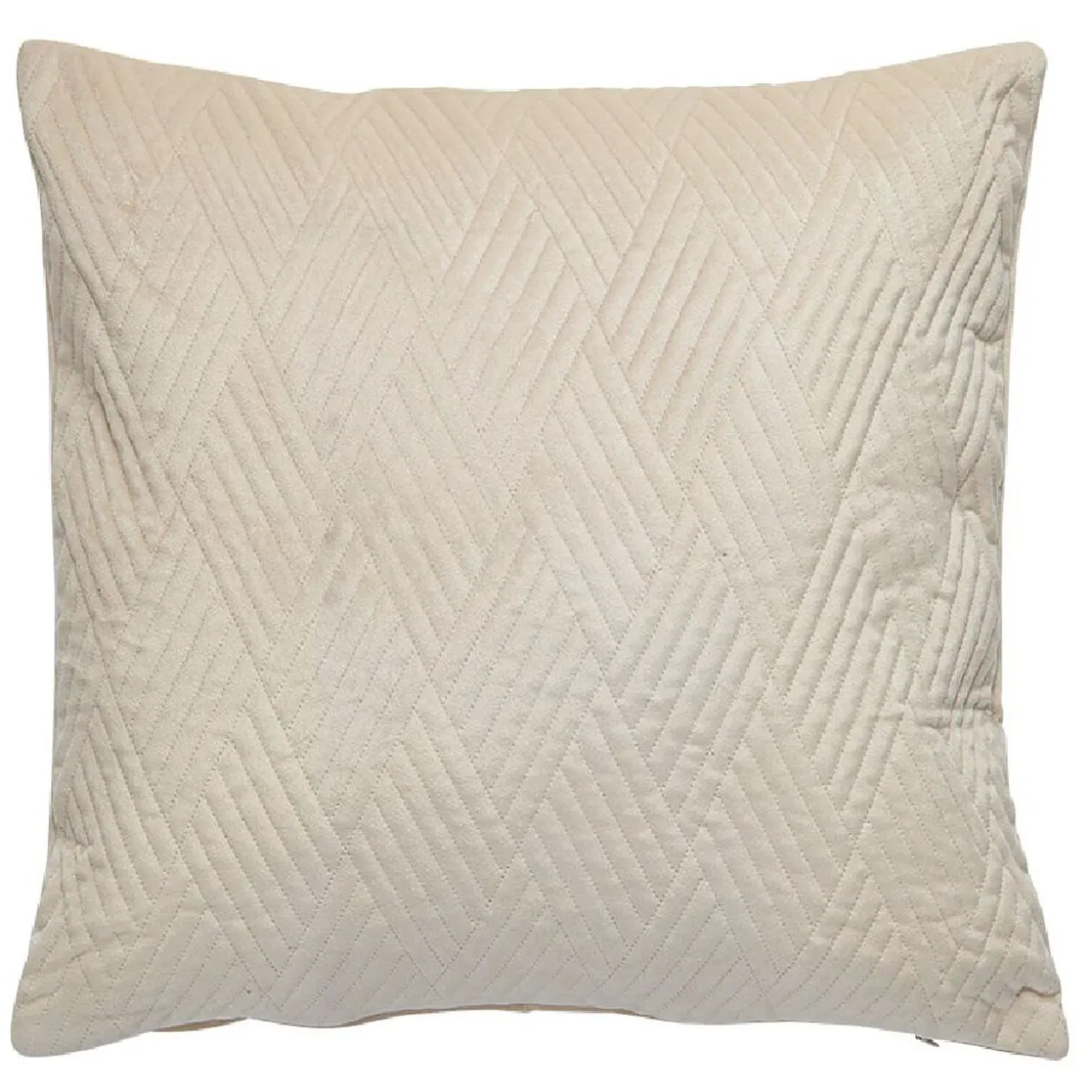 Housse de coussin carrée beige imitation velours et au motif pinsonic.
