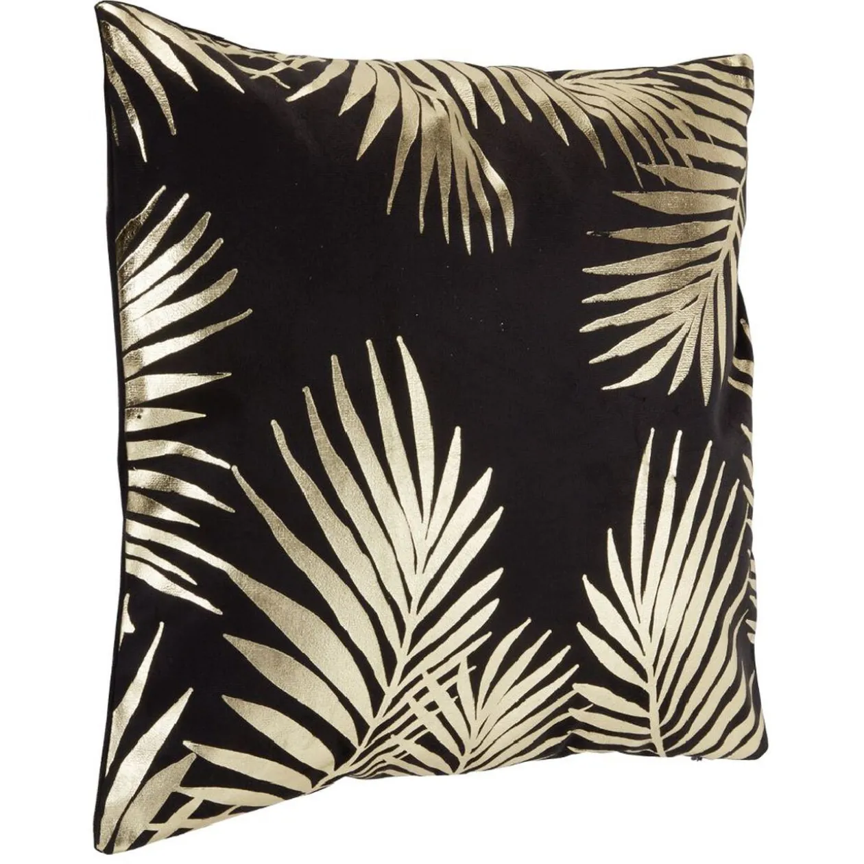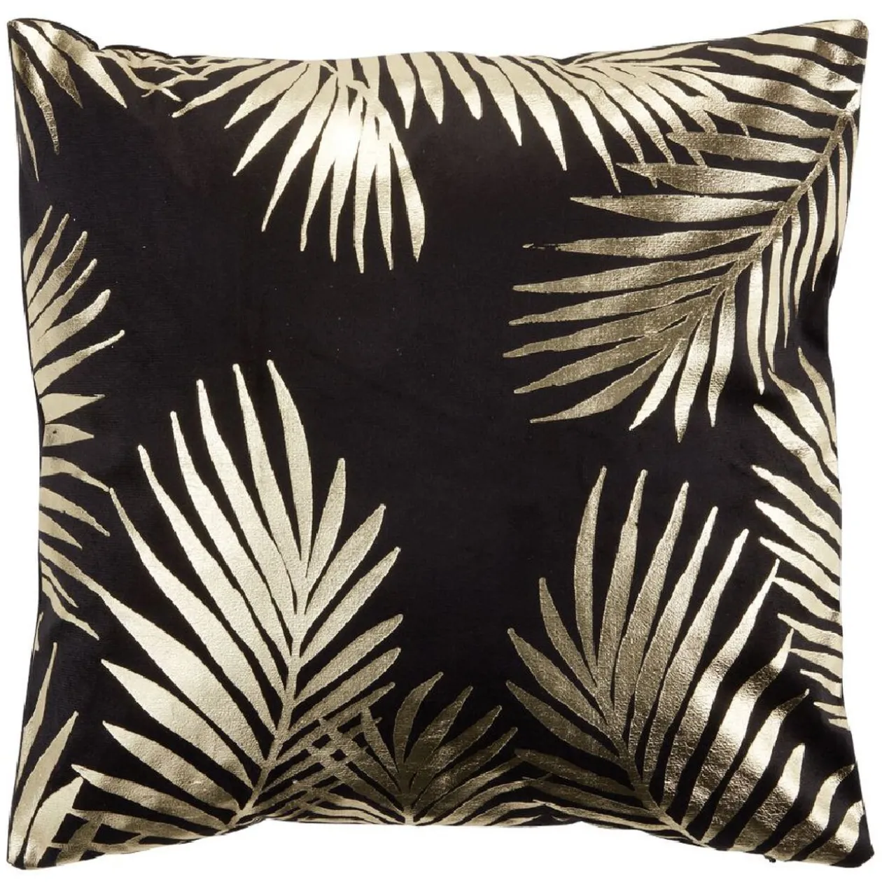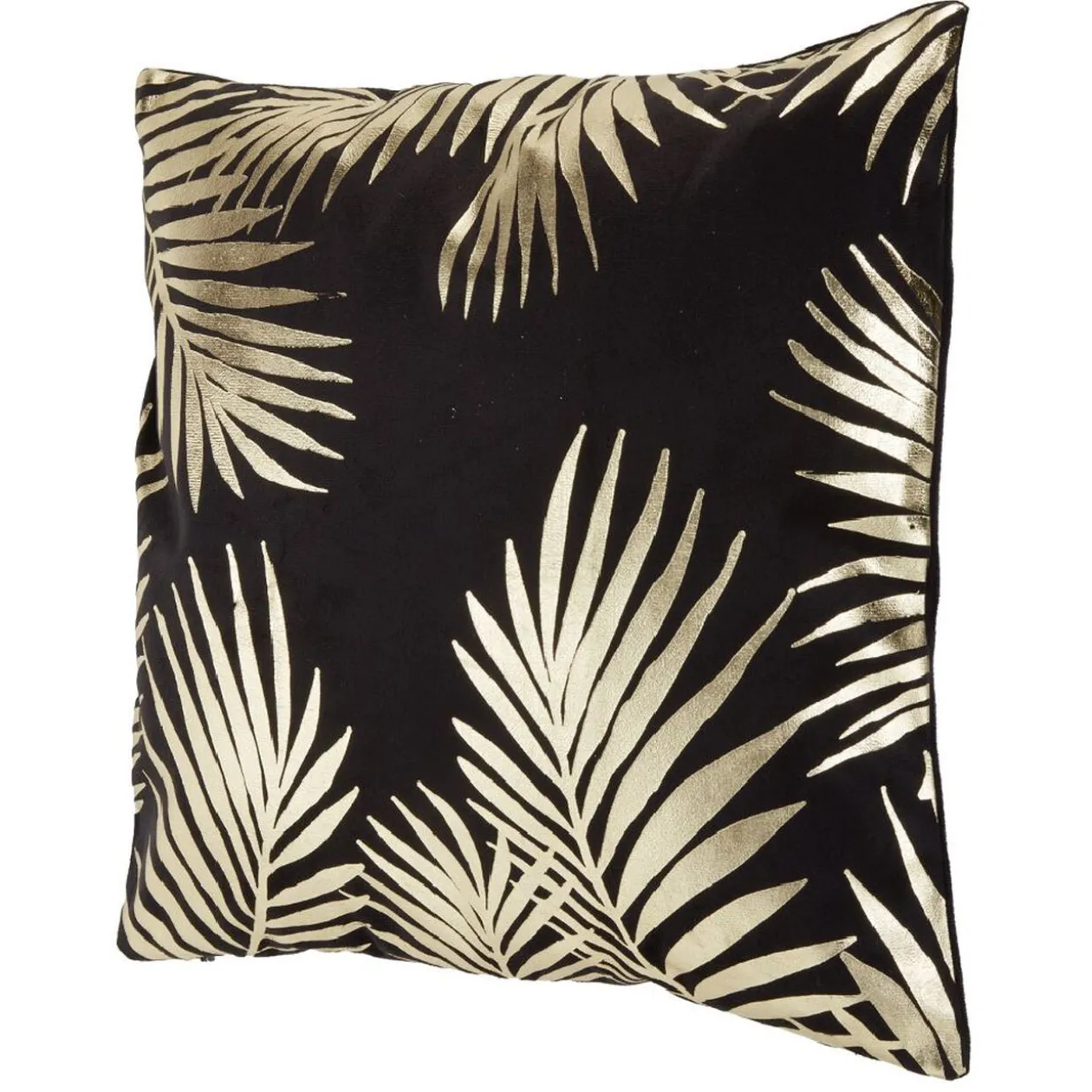 Housse de coussin de couleur noire décorée d’un motif doré.