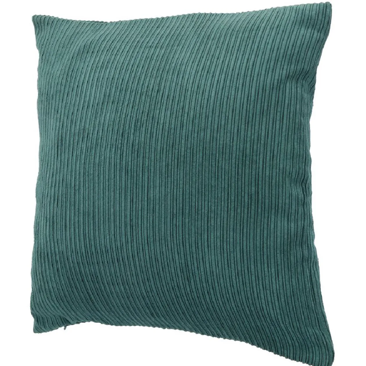 Housse de coussin carrée imitation velours vert émeraude avec rayures.