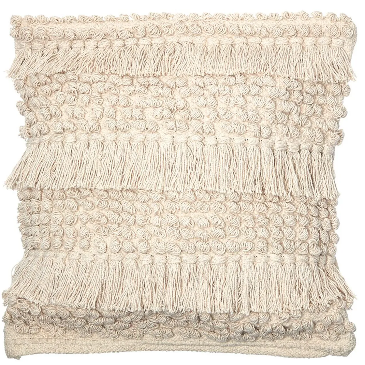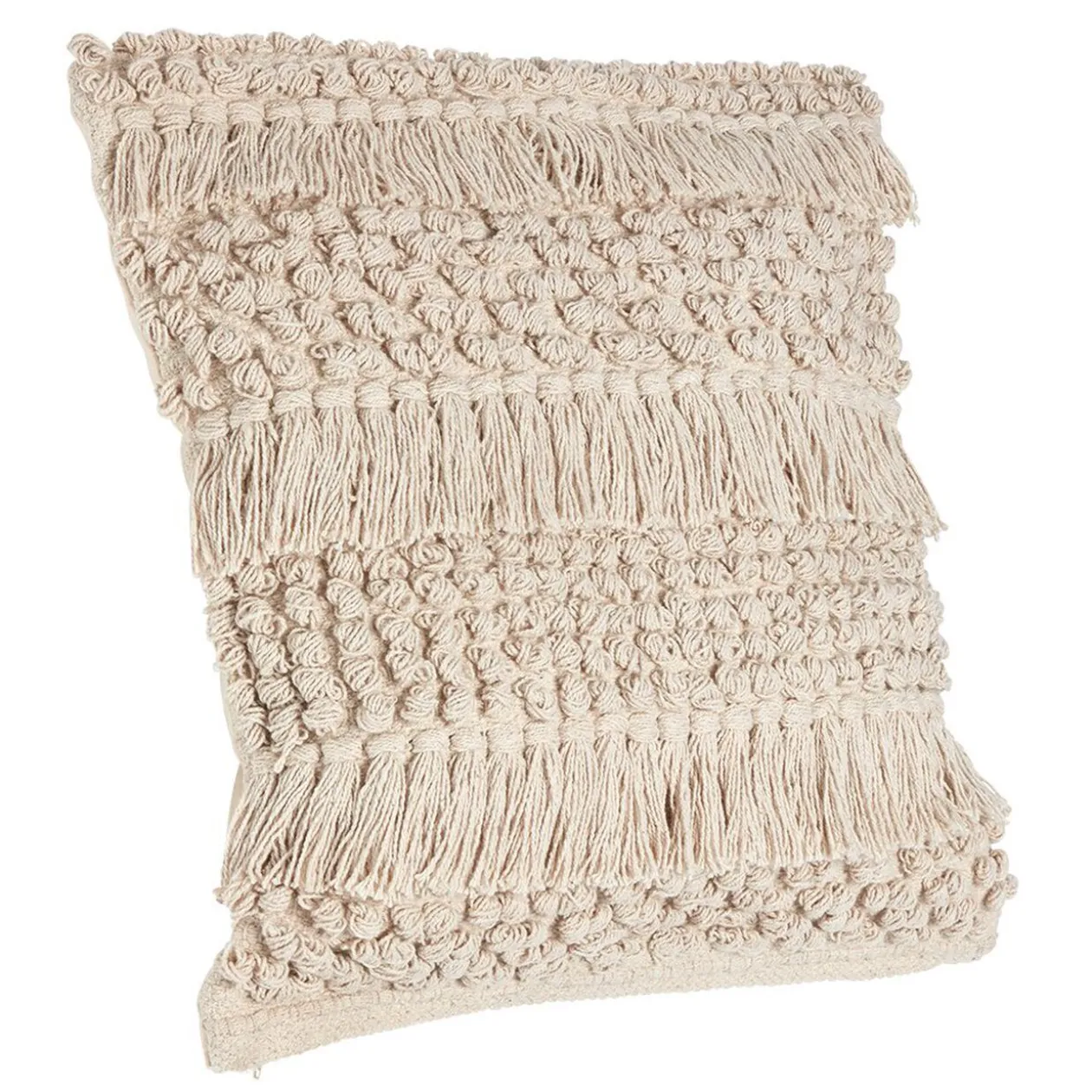 Housse de coussin en macramé coloris naturel.
