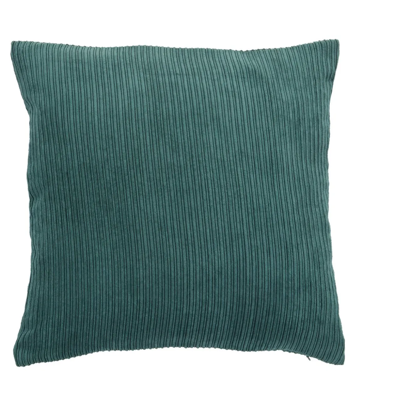 Housse de coussin carrée en velours et rayures de couleur vert émeraude.