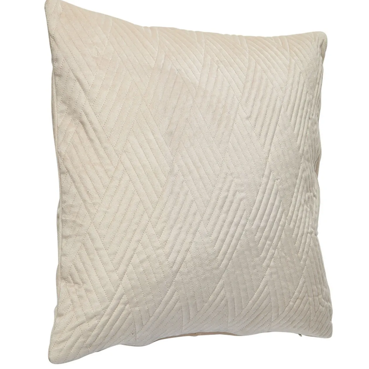 Housse de coussin carrée beige en velours et au motif pinsonic.