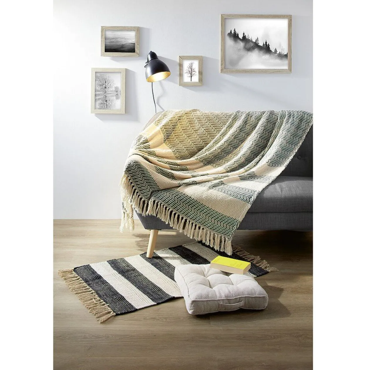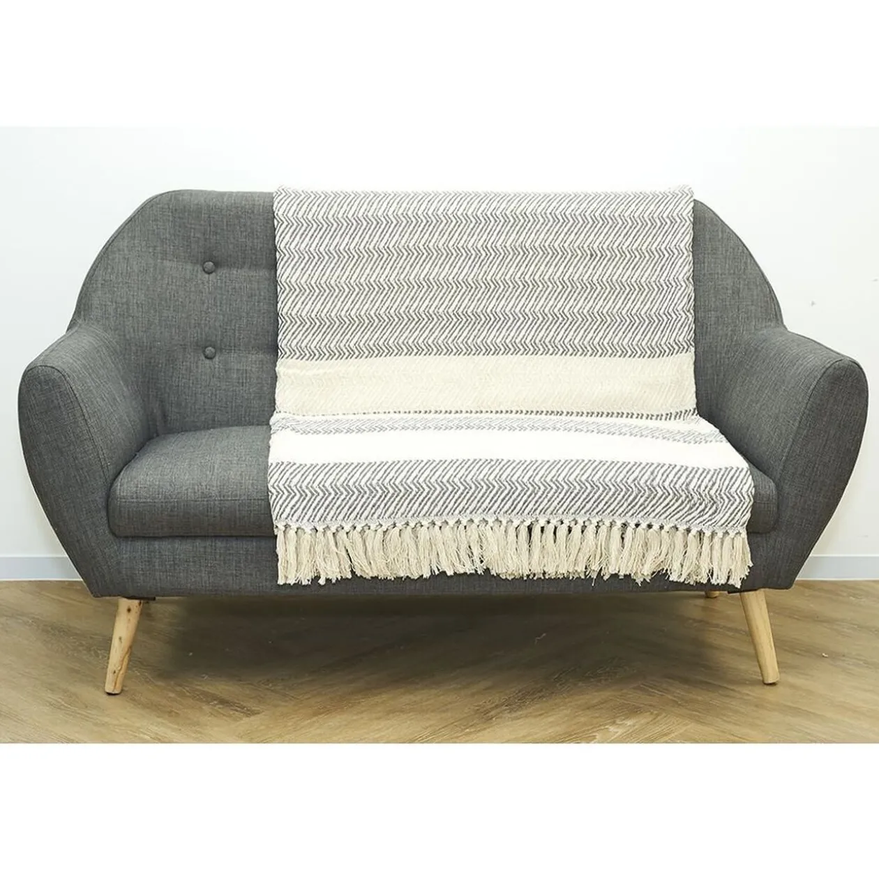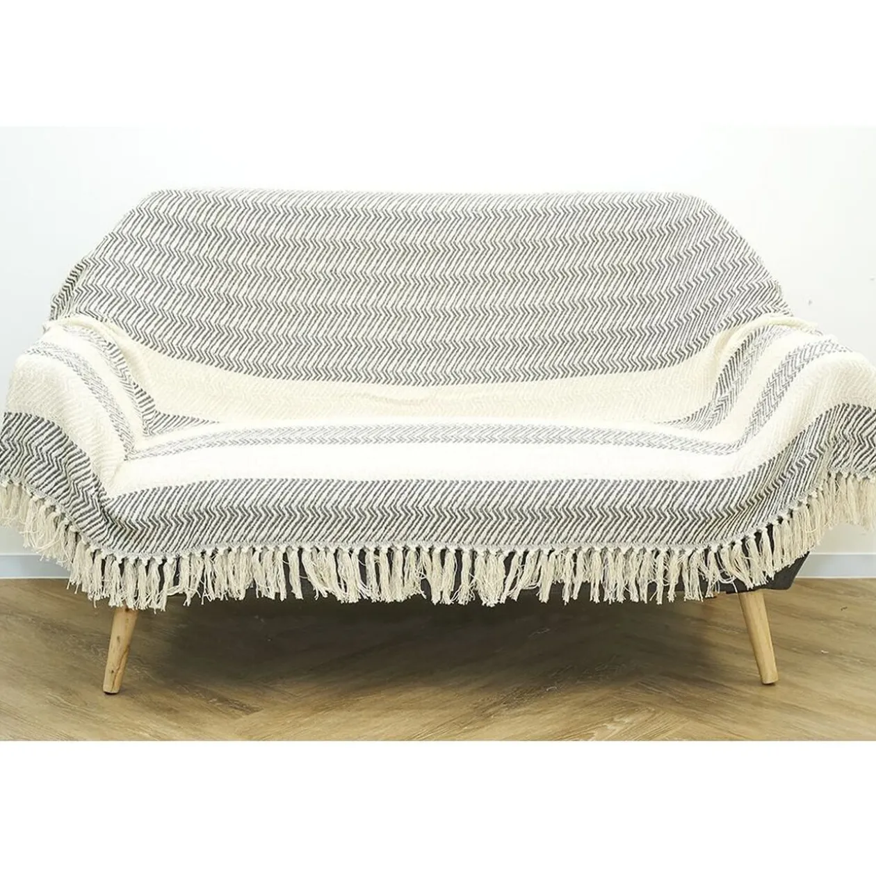 Jeté de canapé design géométrique de couleurs ivoire/gris ou ivoire/bleu.
