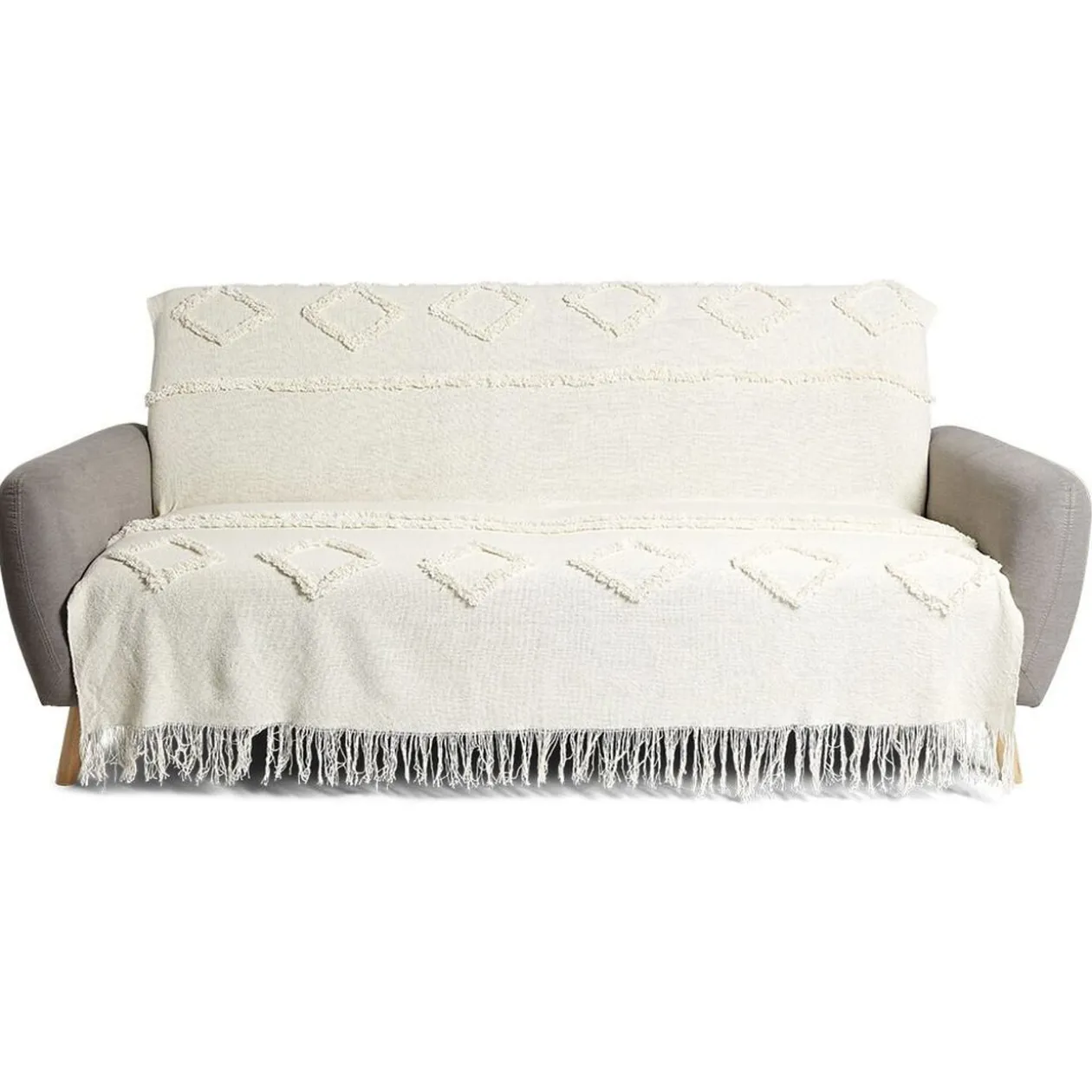 Le jeté de canapé tufté beige à franges est conçu 100% en coton avec un processus de tuftage minutieux assurant une texture douce et agréable au toucher.