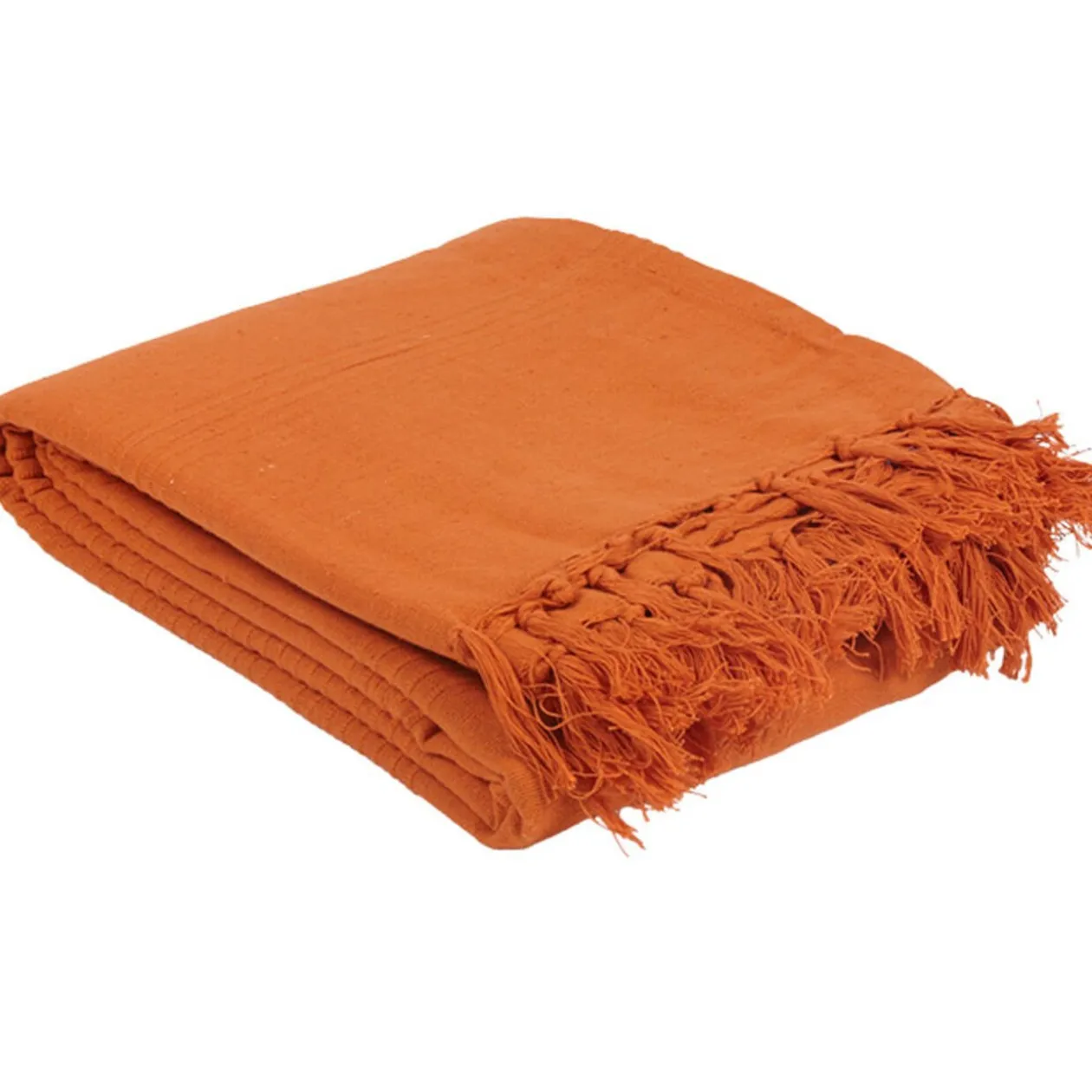 Jeté de canapé à franges orange, dim. 170×250 cm, coton.