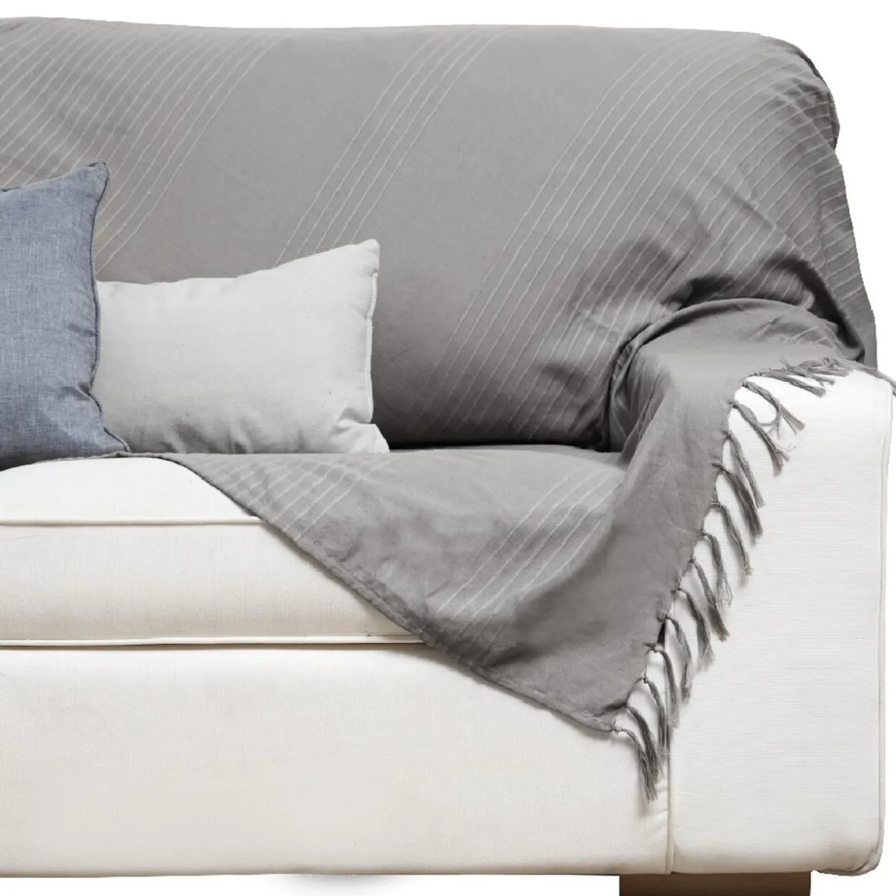 Renouvelez votre décor facilement avec ce jeté de canapé à franges en coton uni gris, idéal pour donner un style sobre et élégant à votre coin salon.