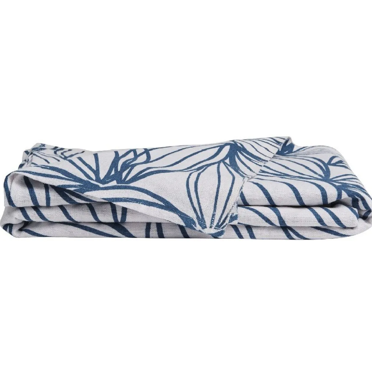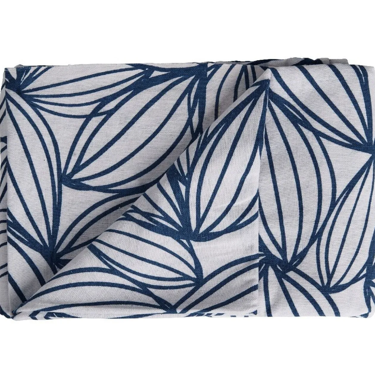 Jeté de canapé de la collection cyclade en coton bleu et blanc avec motif feuilles