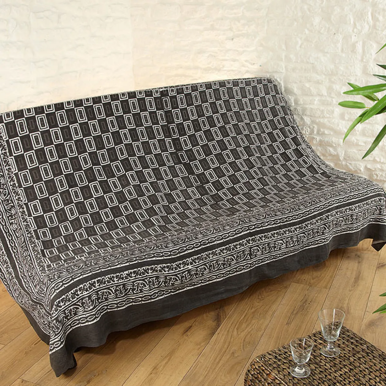 Jeté de canapé noir et blanc ethnique