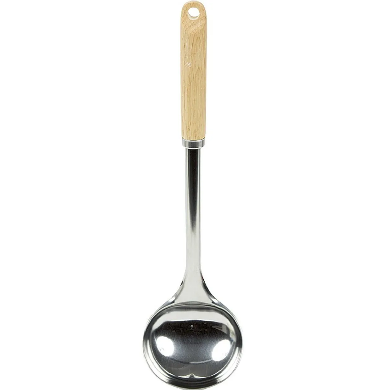 Louche en inox avec manche en bois. Cet ustensile robuste et élégant deviendra vite votre allié pour mélanger et servir vos différents plats en sauce.