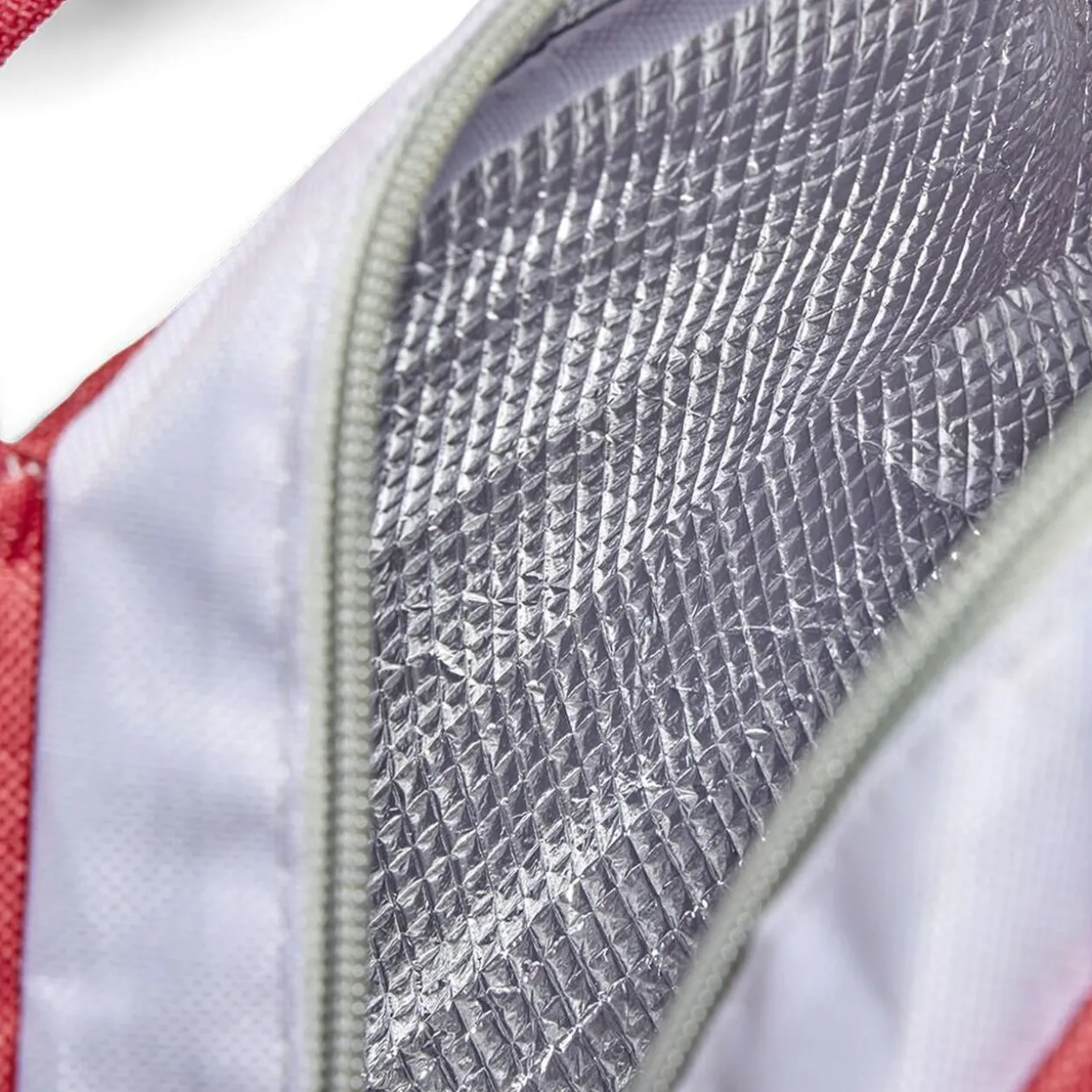 Compact et élégant, optez pour ce lunch bag rouge et beige à fermeture à glissière, idéal pour le transport de votre repas quotidien au bureau ou en pique-nique.
