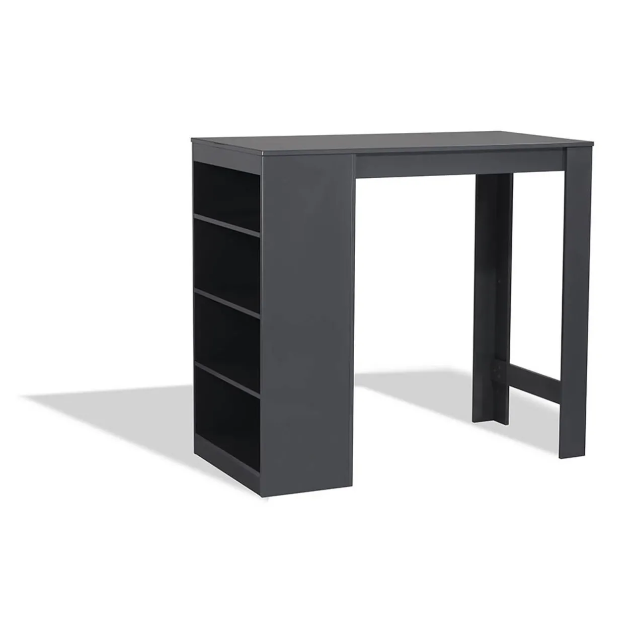 Votre salon manque-t-il d’un léger soupçon de charme moderne ? Alors optez pour le mange-debout de la gamme Luminosa ! Constitué d’une structure en panneau MDF (panneau de fibres de bois) fini à la peinture polyuréthane, ce mange-debout allie un design à la fois actuel et fonctionnel. Sa couleur gris anthracite est un must pour les modernistes ! Bénéficiant d’une stabilité exemplaire, ce meuble comprend aussi un espace de rangement à trois étagères pour ranger vos aliments ou exposer vos objets. Il est conseillé de placer ce mange-debout dans une composition contemporaine. D’ailleurs, la gamme Luminosa propose des tables et des consoles qui se marient parfaitement avec ce mange-debout, donc servez-vous ! Ce meuble vient aussi en blanc. Soulignez votre salon avec un mix and match de mobilier pratique et de grande classe !