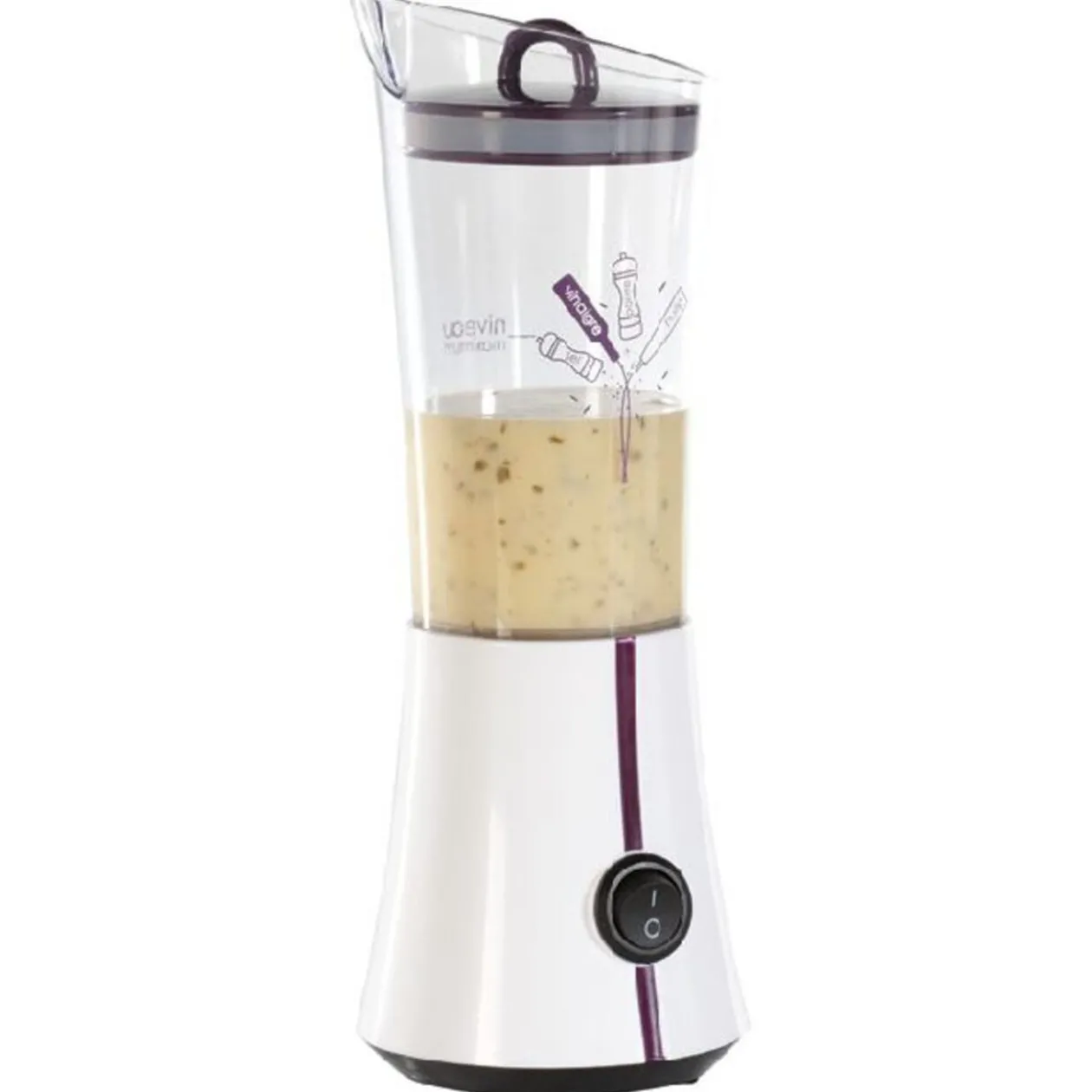Mélangeur électrique pour sauces, h. 23,5 cm, cont. 17,5 cl, bec verseur, 1 bouchon, lame inox. Fonctionne avec 6 piles LR03 non fournies. Diff. coloris, disponibilité selon arrivage..