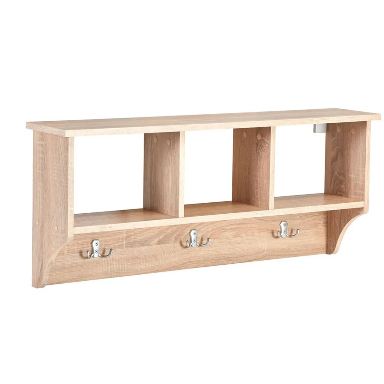 Besoin d’un endroit où suspendre votre manteau? Le meuble d’entrée haut Ohio est à la fois pratique et esthétique. Avec ses trois niches, vous pourrez ranger vos affaires à portée de main avant de sortir de chez vous. Les trois patères seront très utiles pour accrocher vos vestes et vos sacs sans encombrer le passage. Sa finition effet chêne sonoma lui donne un aspect naturel, pour une décoration authentique.