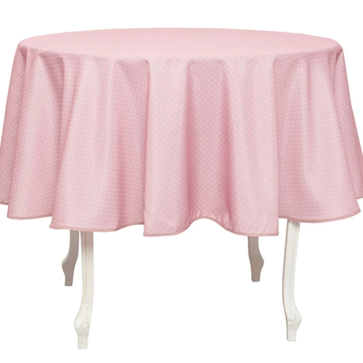 Nappe antitâches ronde rose, Ø 180 cm, polyester. Infroissable, finition biais.