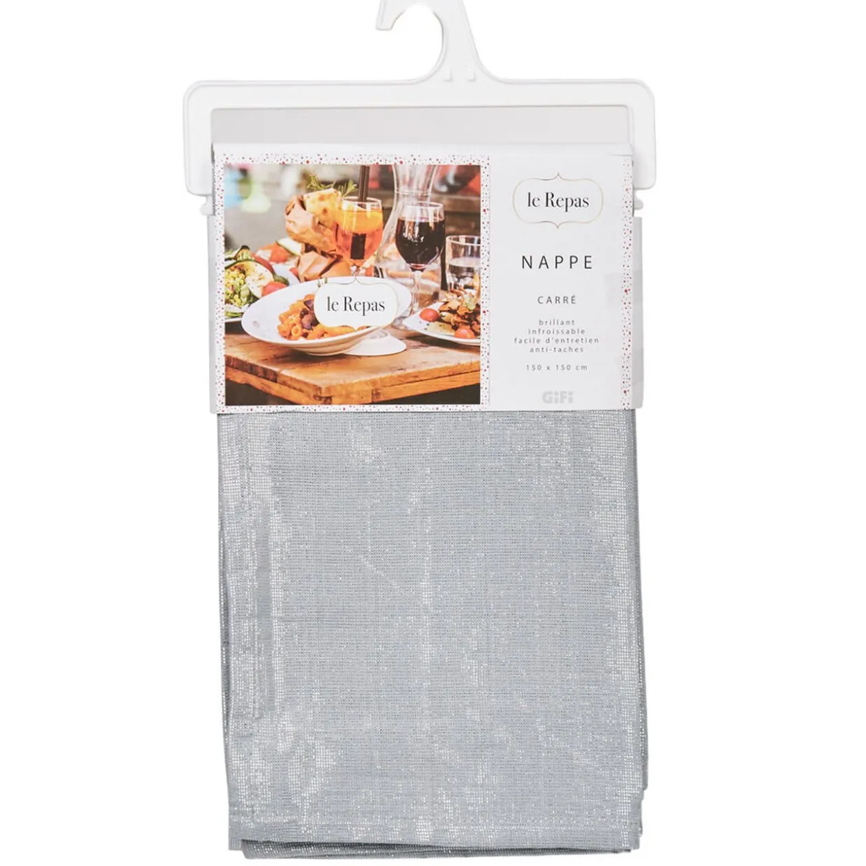 Nappe carrée de couleur grise argentée, idéal pour la décoration de votre table de fête.