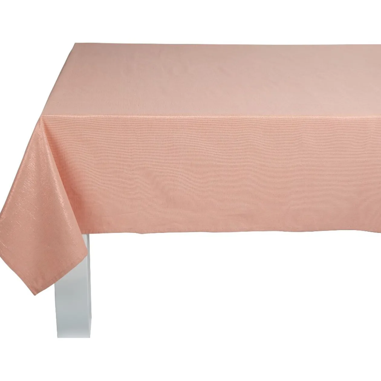 Nappe rectangulaire en coton rose avec fil fil métallique brillant doré.