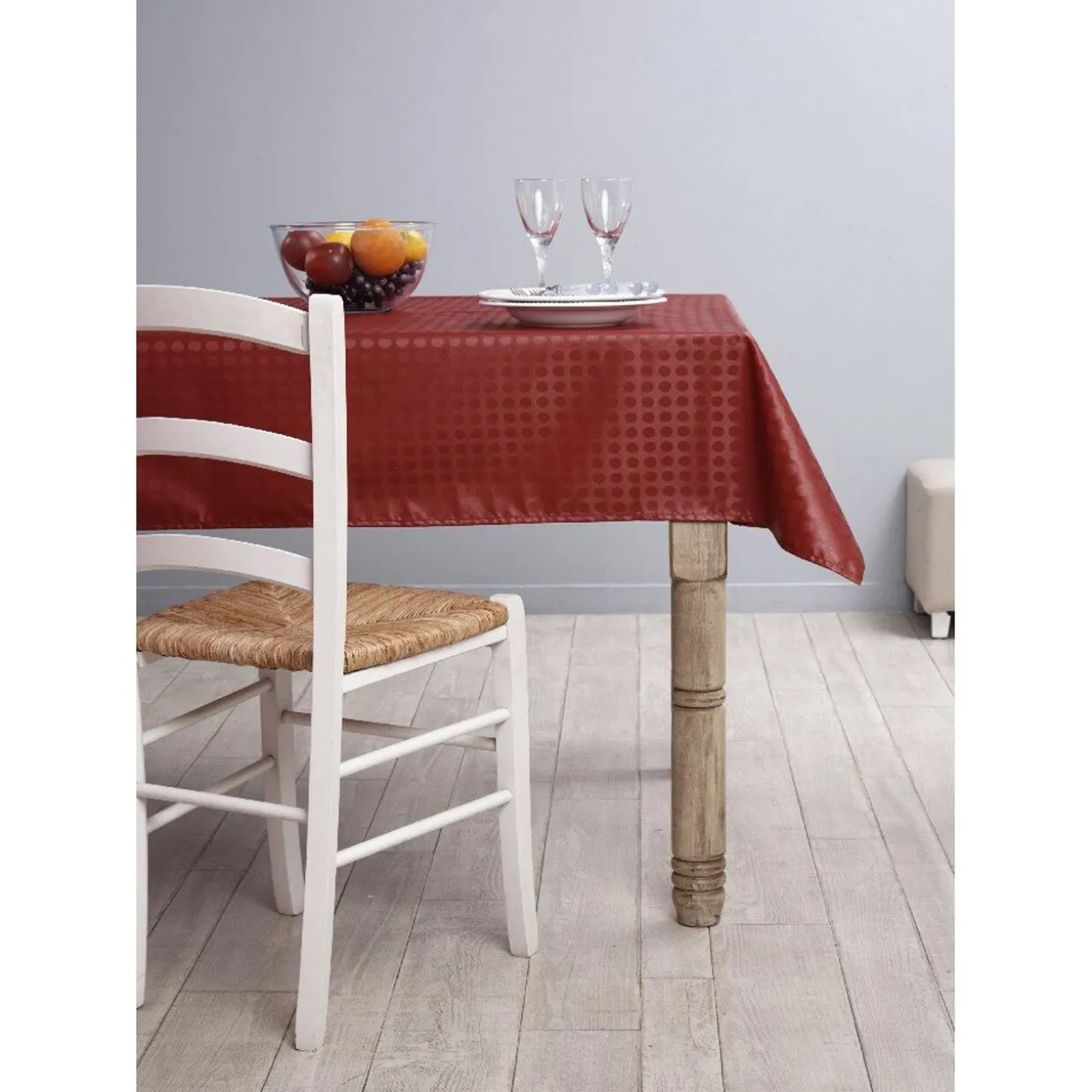 Nappe rectangulaire enduite de couleur rouge, finition biais.
