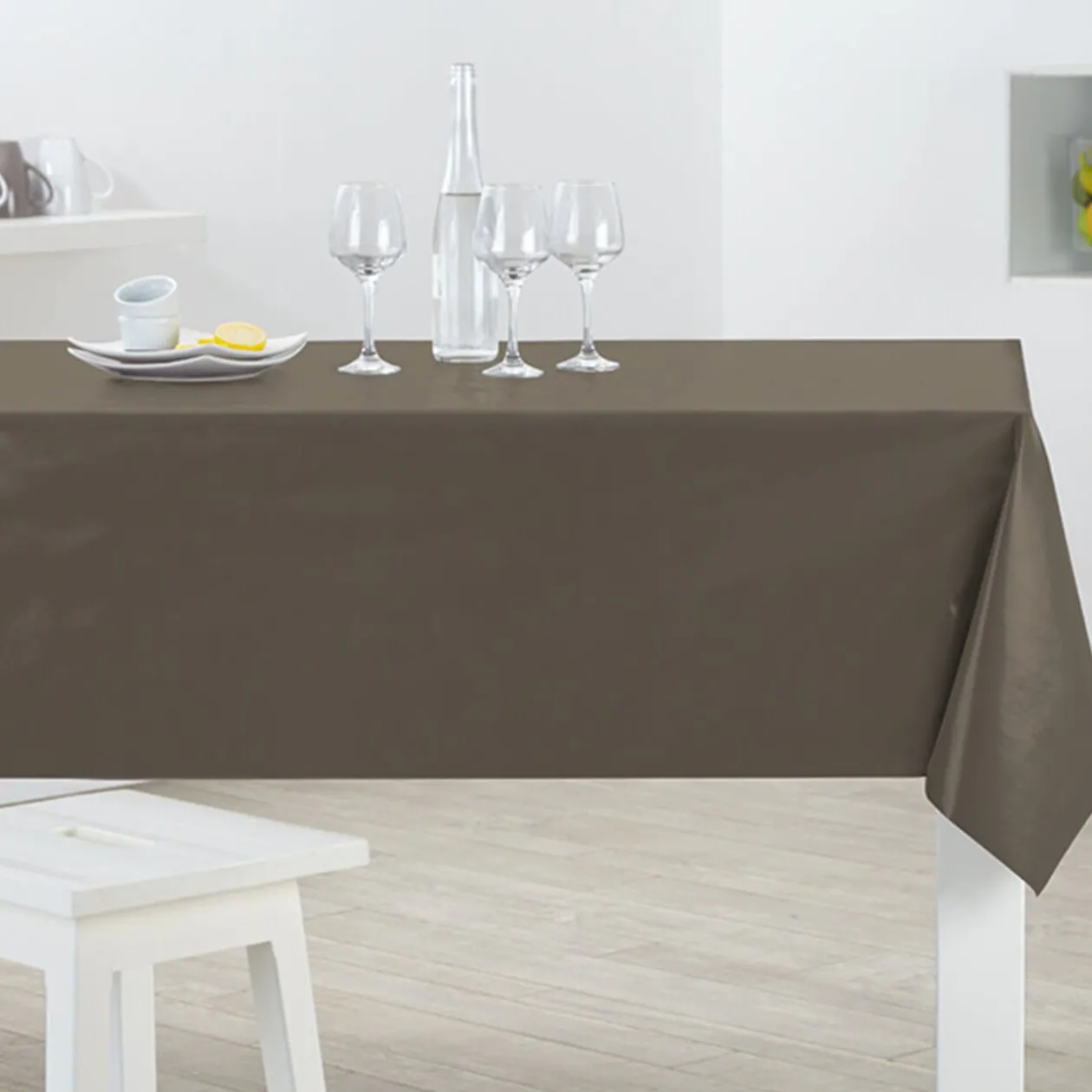 Nappe toile cirée rectangulaire unie beige, dim. 140×250 cm, plastique.