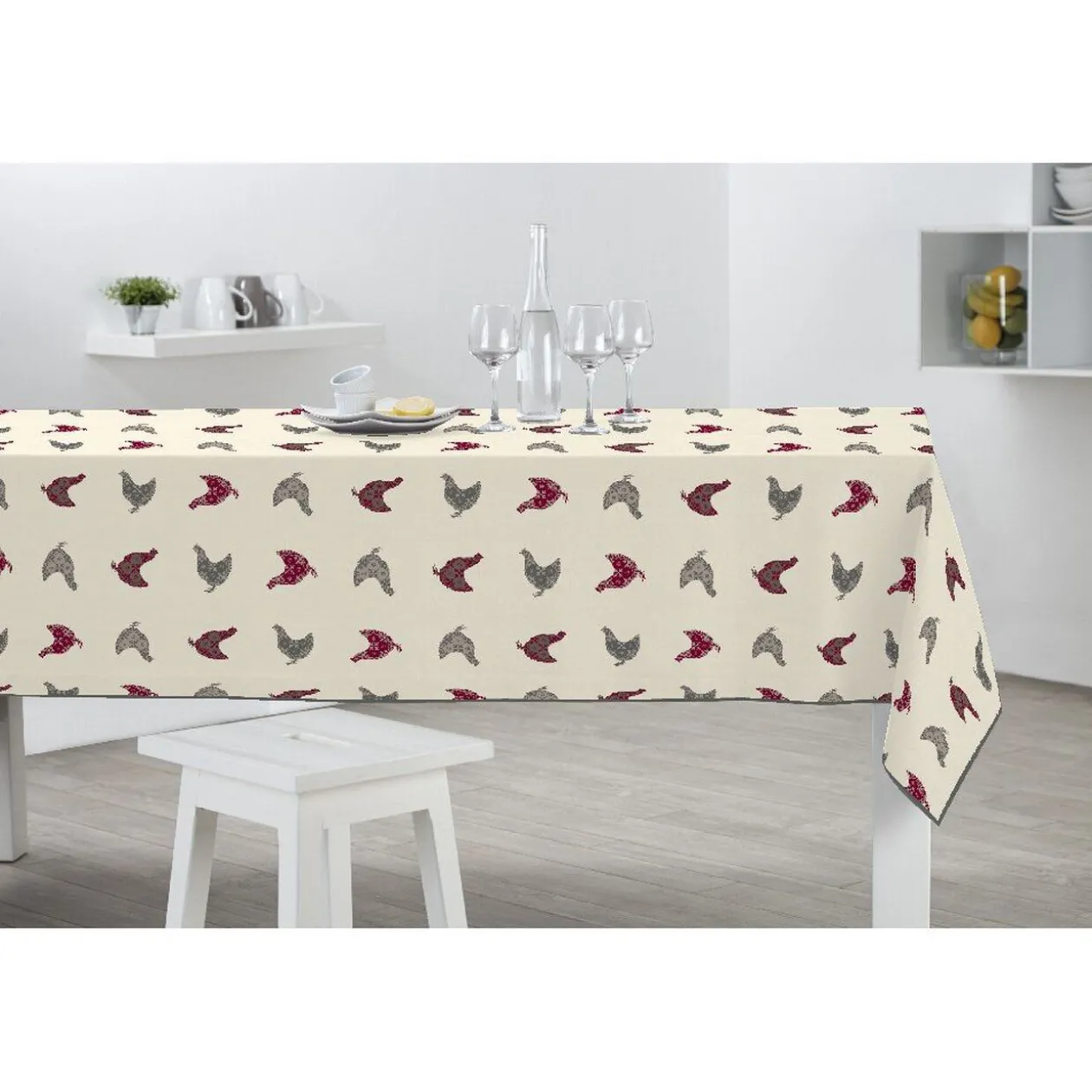 Nappe rectangulaire toile cirée motif poules, dim. 140×240 cm, PVC.