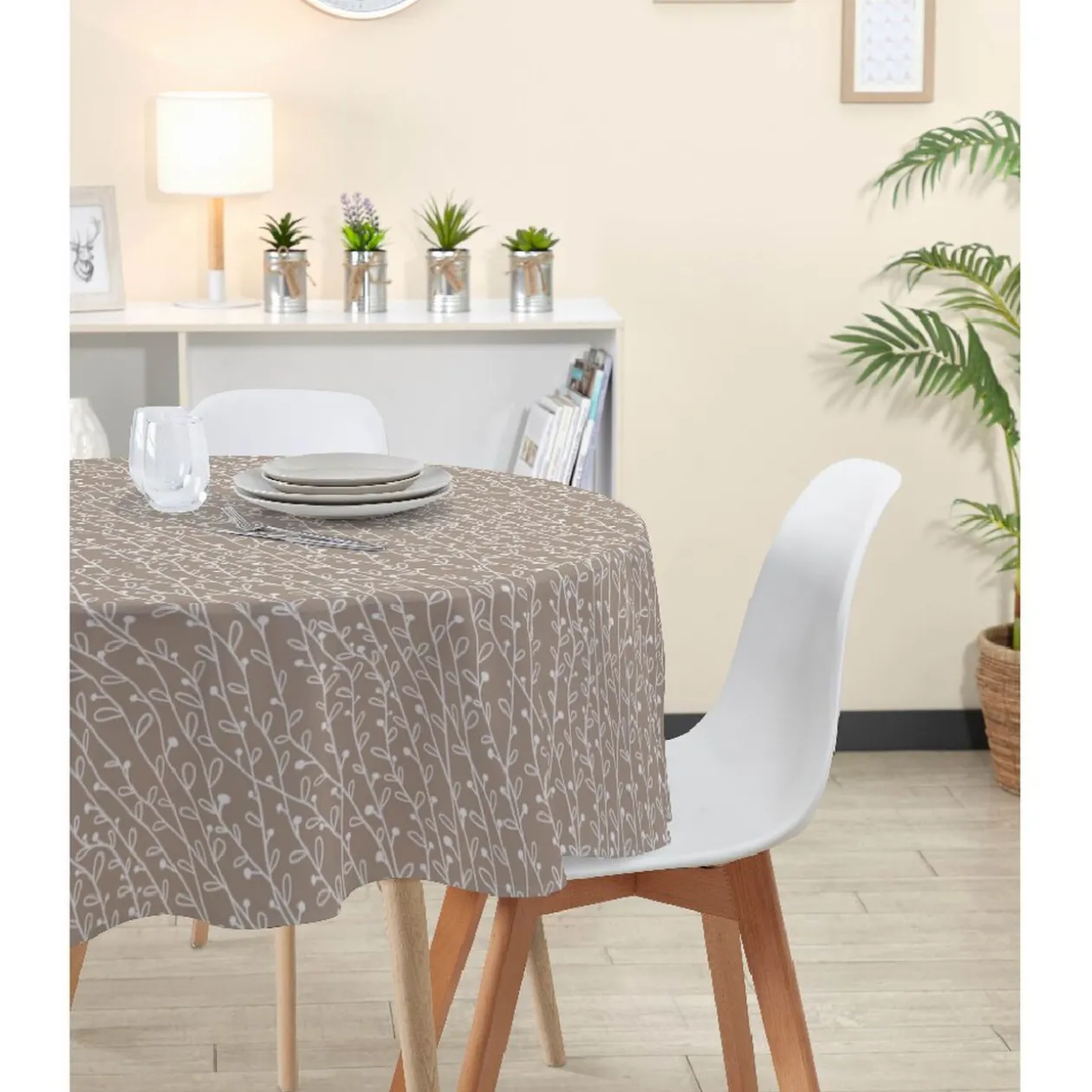 Optez pour cette nappe ronde en polyester gris imprimé fleurs blanches, décorative et facile d’entretien, elle donnera un style nature et tendance à votre table de séjour.