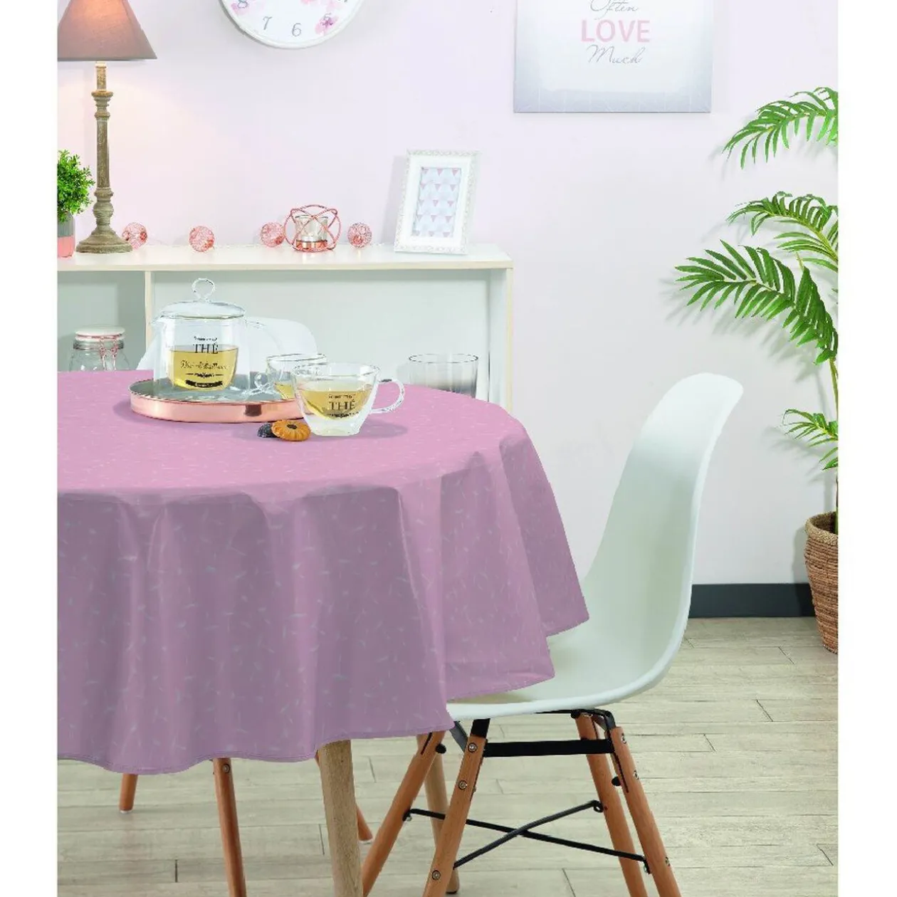 Optez pour cette nappe ronde en polyester rose avec imprimé fleurs, décorative et facile d’entretien, elle donnera une touche élégante et raffinée à votre table.