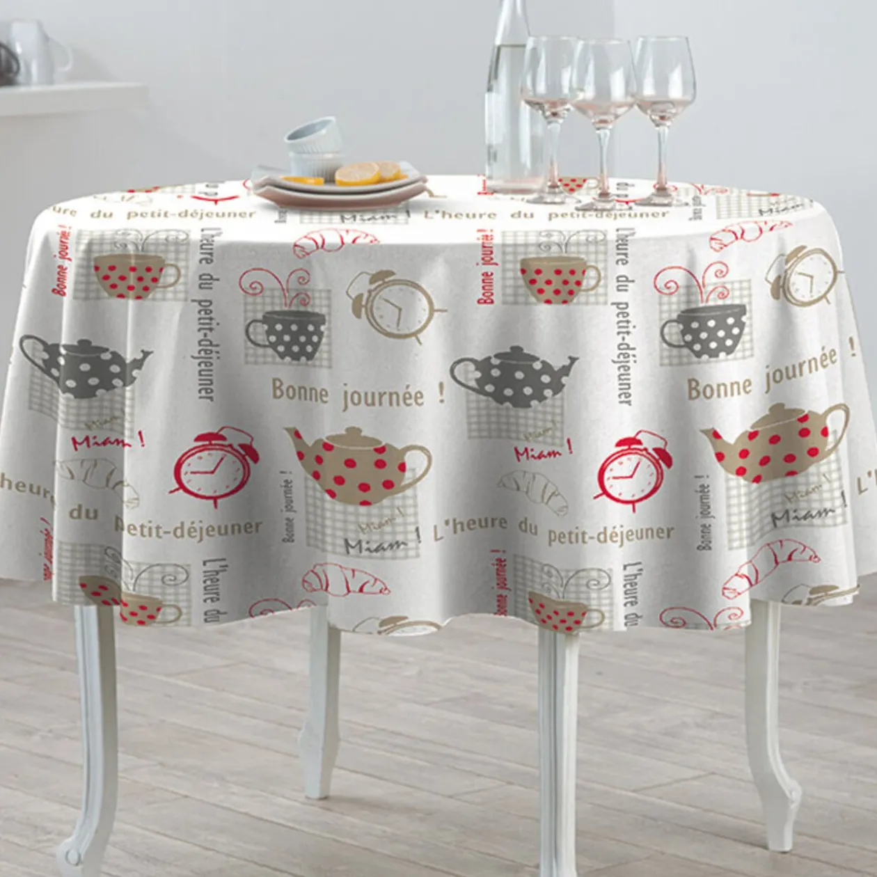 Nappe toile cirée ronde design petit déjeuner, ø 180 cm, plastique.