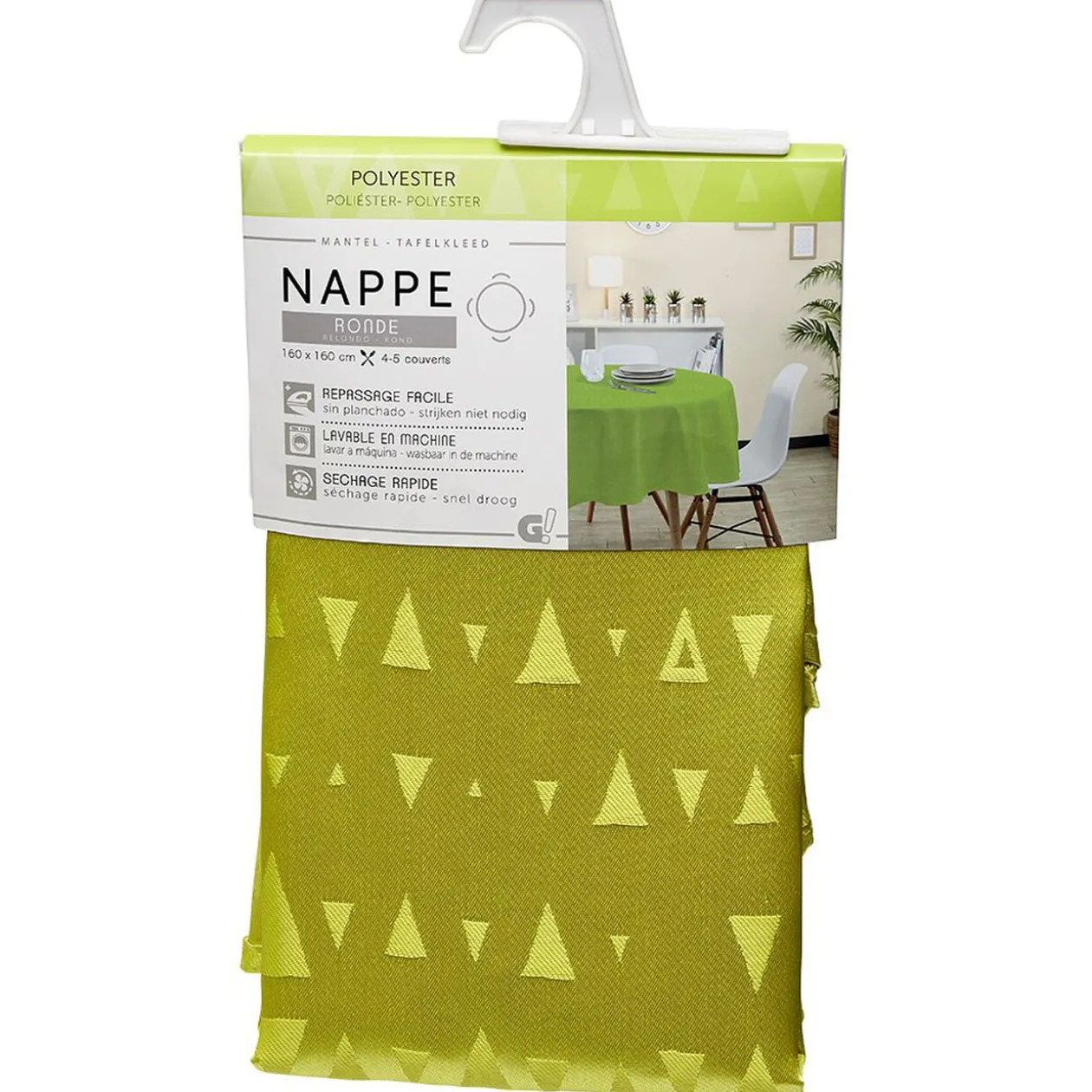 Nappe verte motif géométrie.