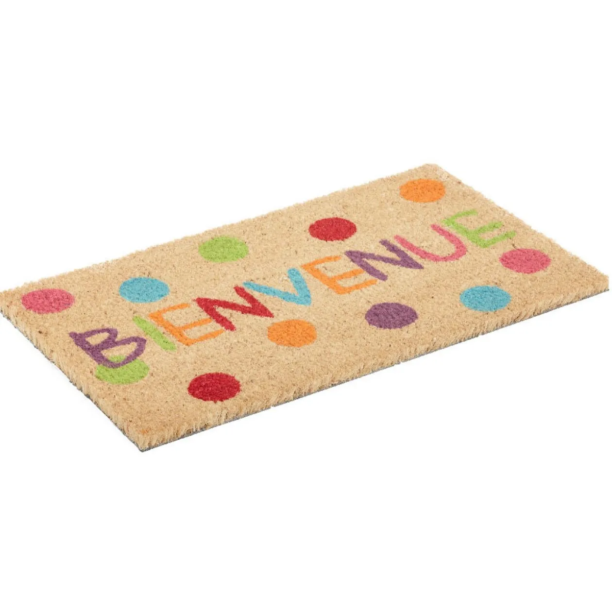 Paillasson Bienvenue motifs pois colorés, dim. 60×35 cm, coco.