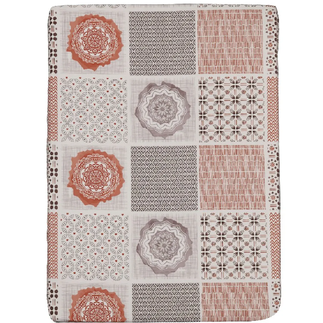 Plongez votre chambre dans une ambiance ethnique avec cette parure de draps imprimée de motifs carreaux de ciment dans les tons marron et gris. Elle comprend: