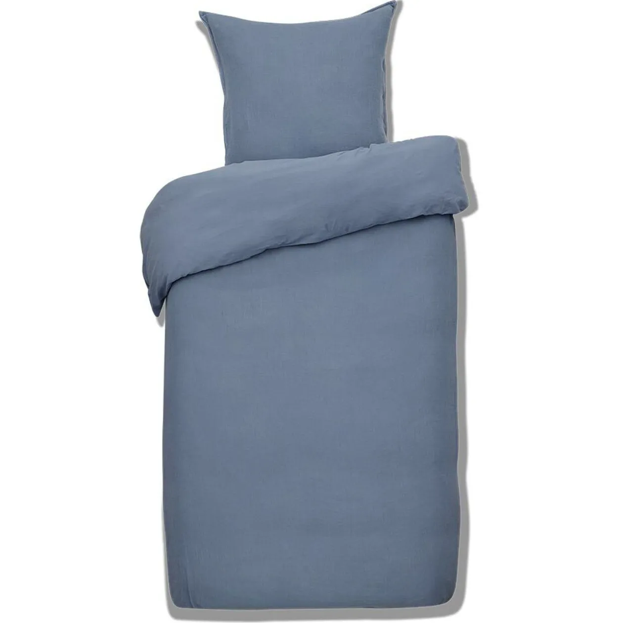Cette parure unie bleue est idéale pour un lit 1 place et facile à harmoniser avec d’autres coloris.