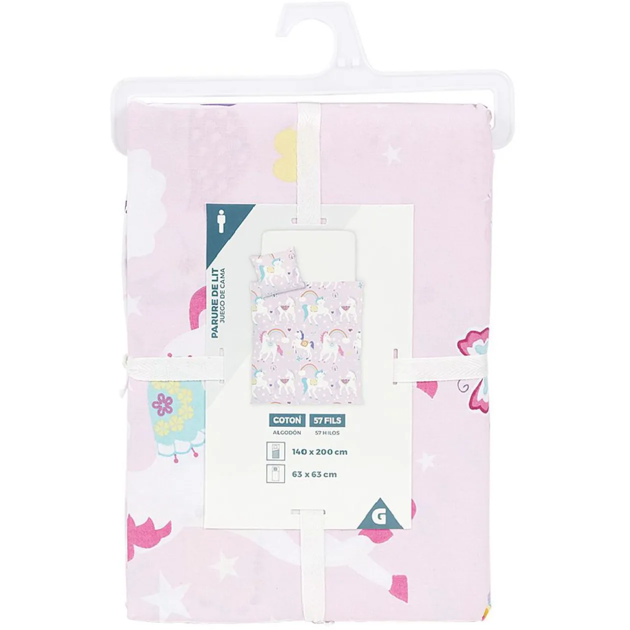 Parure de lit 1 place imprimée design enfant avec taie d’oreiller assortie.