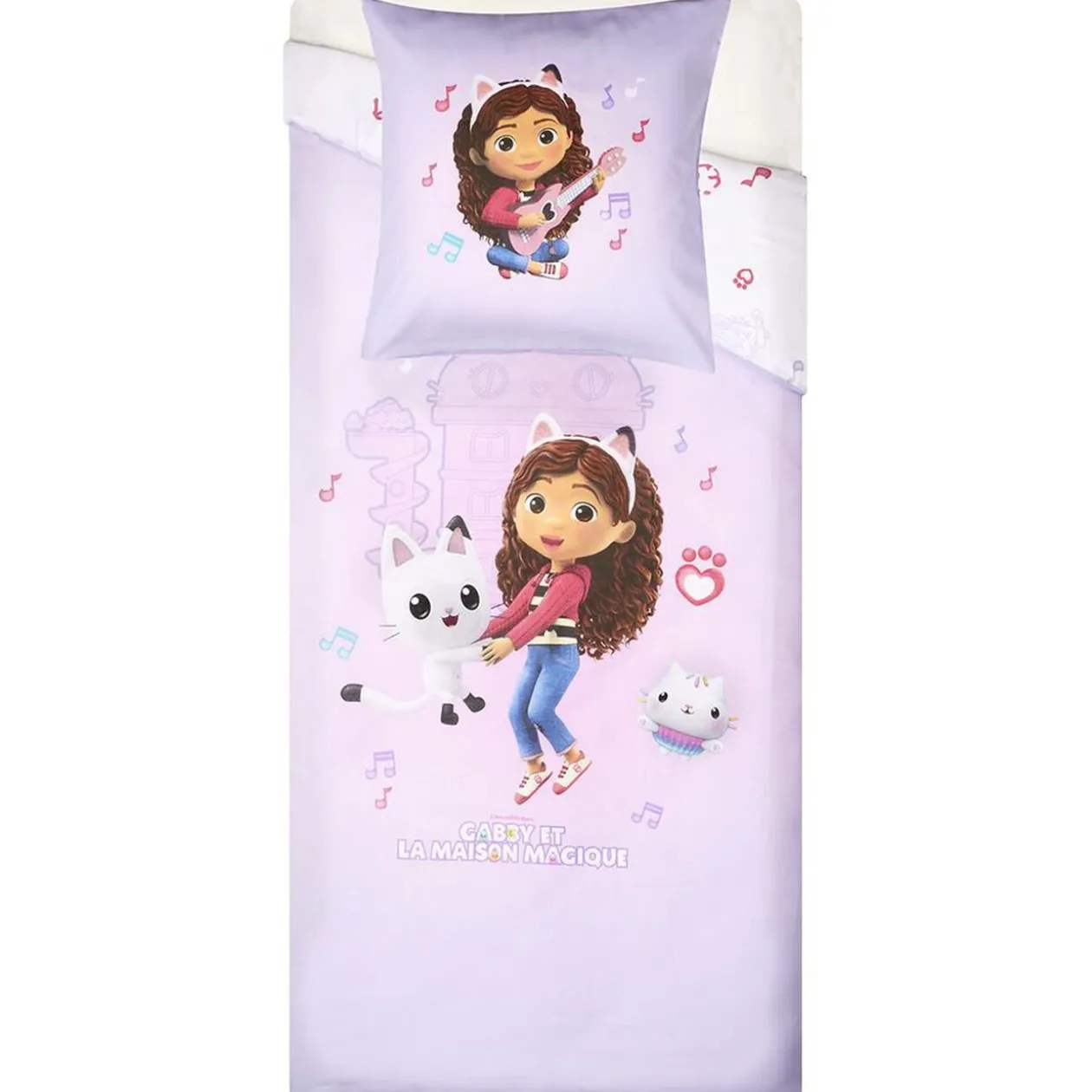 La parure de lit 1 place Gabby et la Maison Magique offre un enchantement nocturne avec ses motifs magiques et ses couleurs vives.