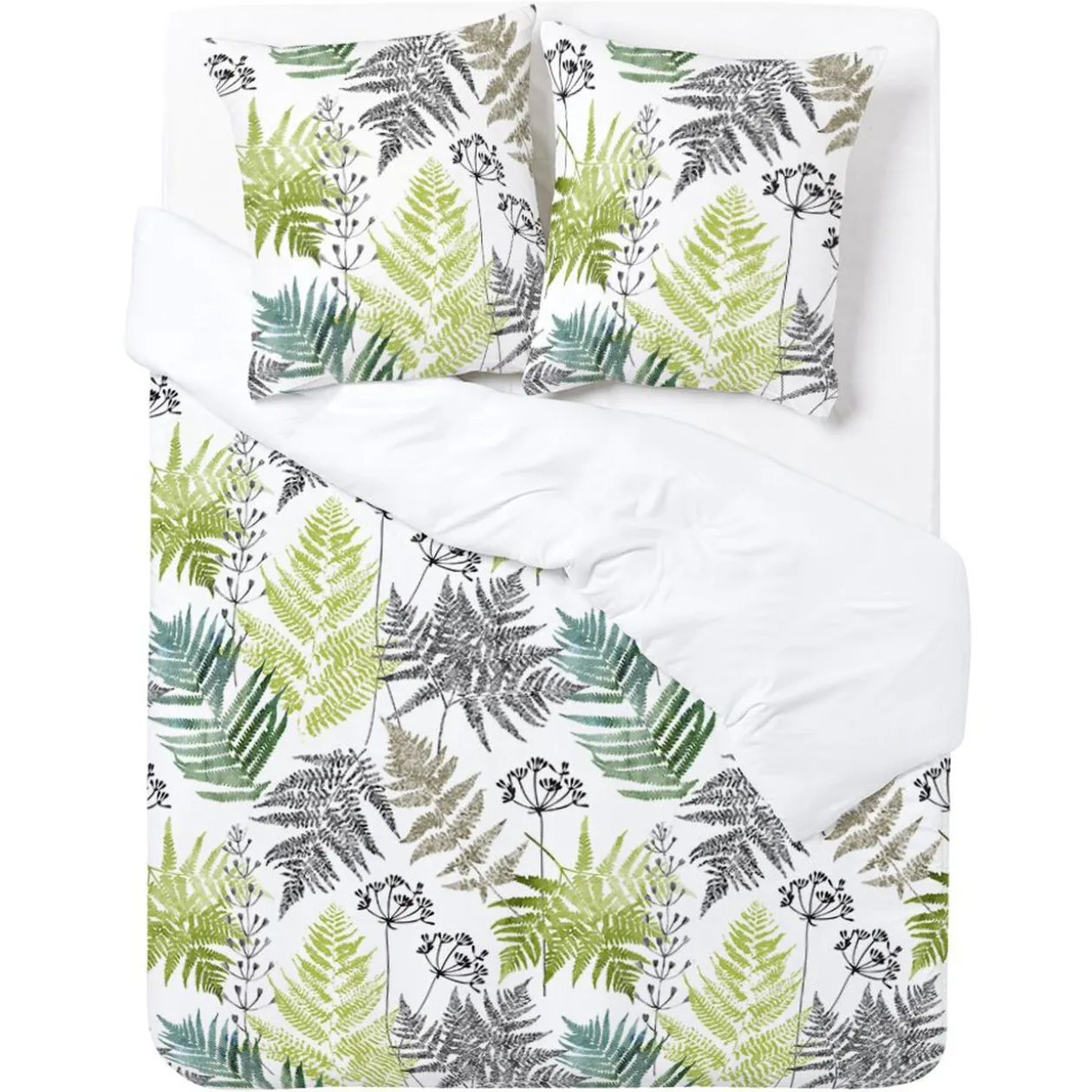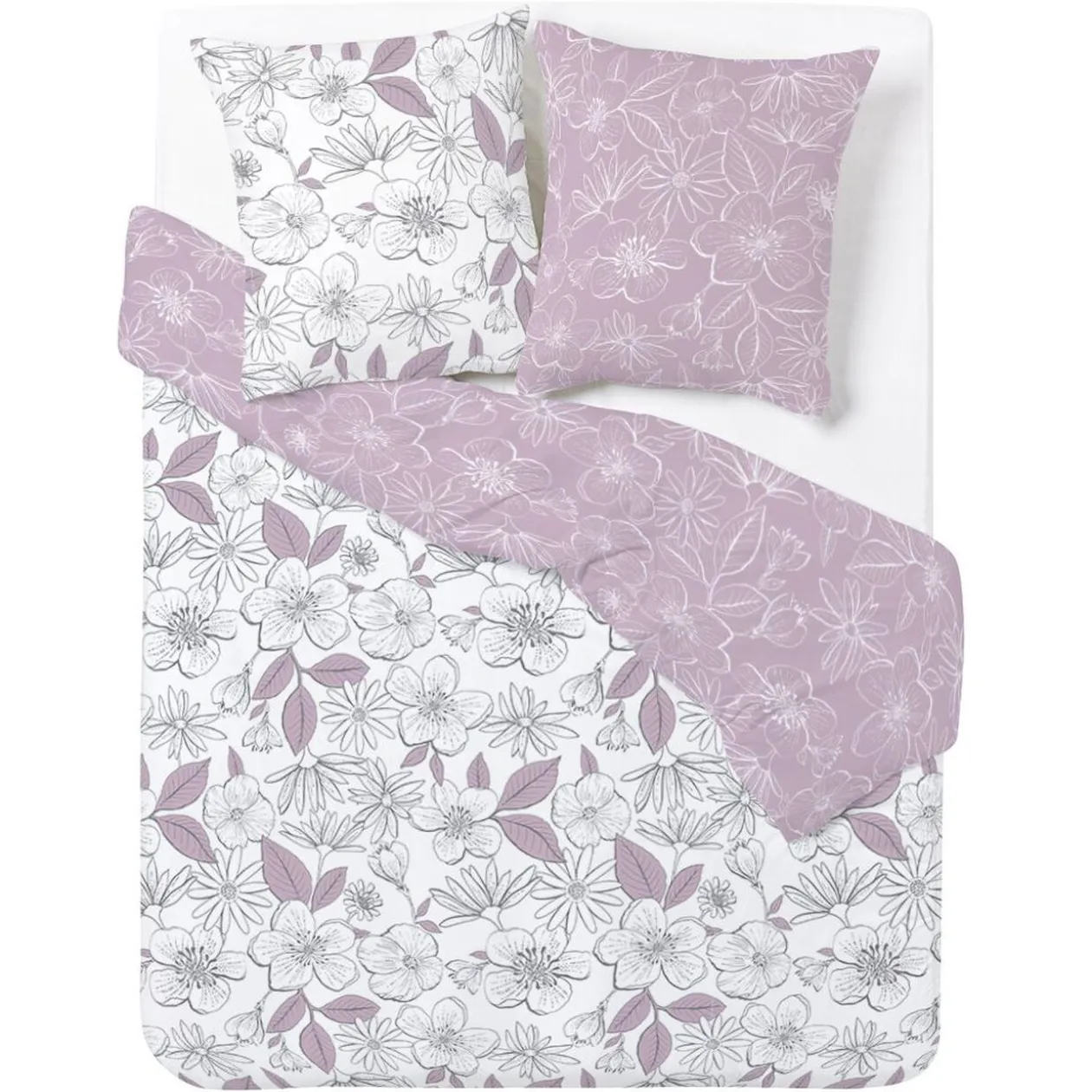 Parure de lit avec 2 taies d’oreiller assorties. Existe en 6 modèles, selon disponibilité en magasin.