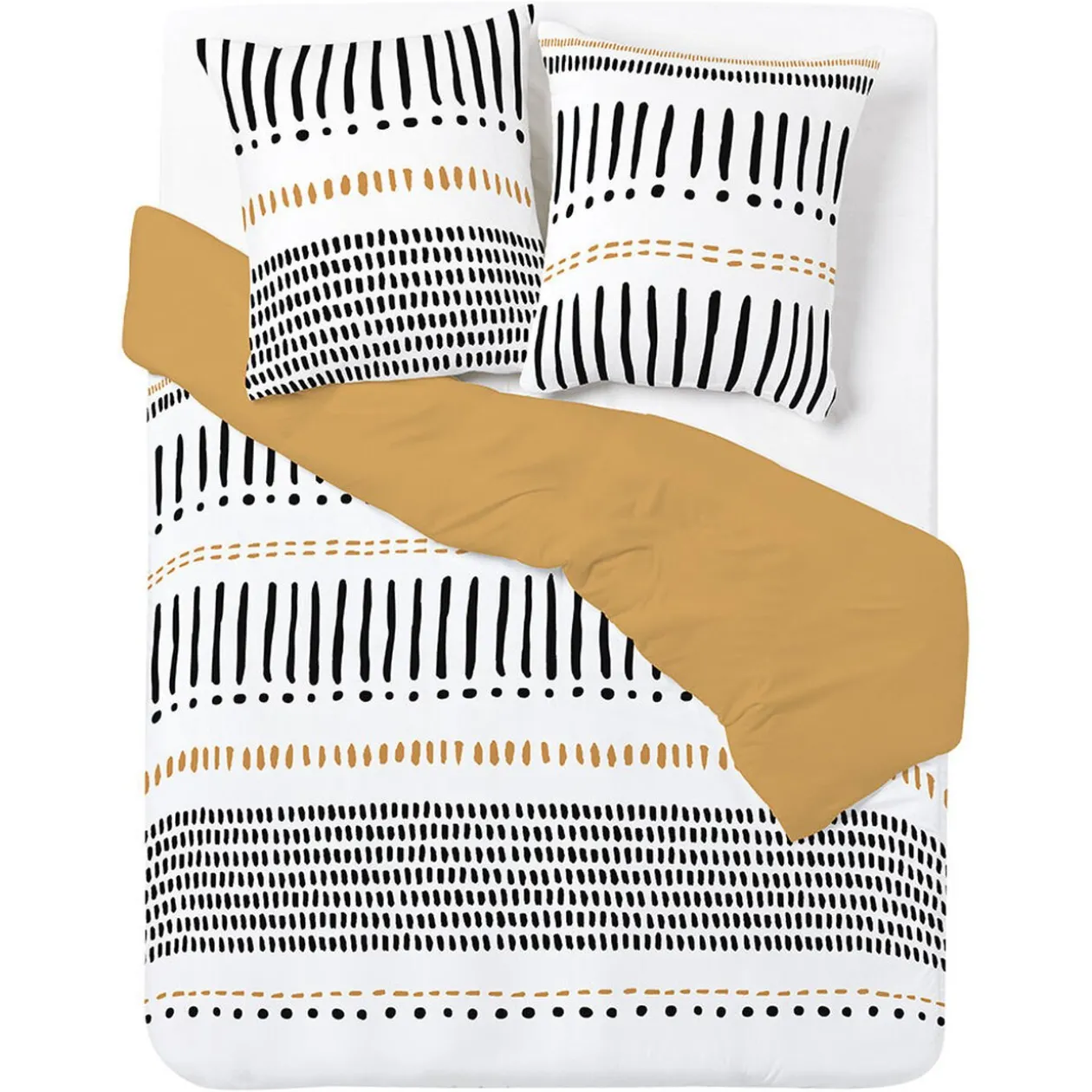 Cet ensemble est composé d’une housse de couette ainsi que de 2 taies d’oreiller aux motifs assortis.