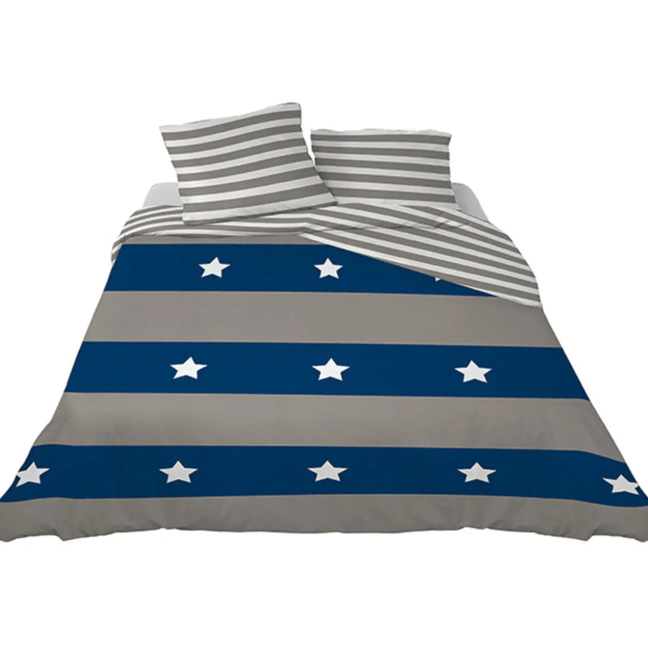 Parure de lit 2 places design étoiles comprenant 1 housse de couette dim. 240×220 cm et 2 taies d’oreillers dim. 63×63 cm, polyester microfibre.