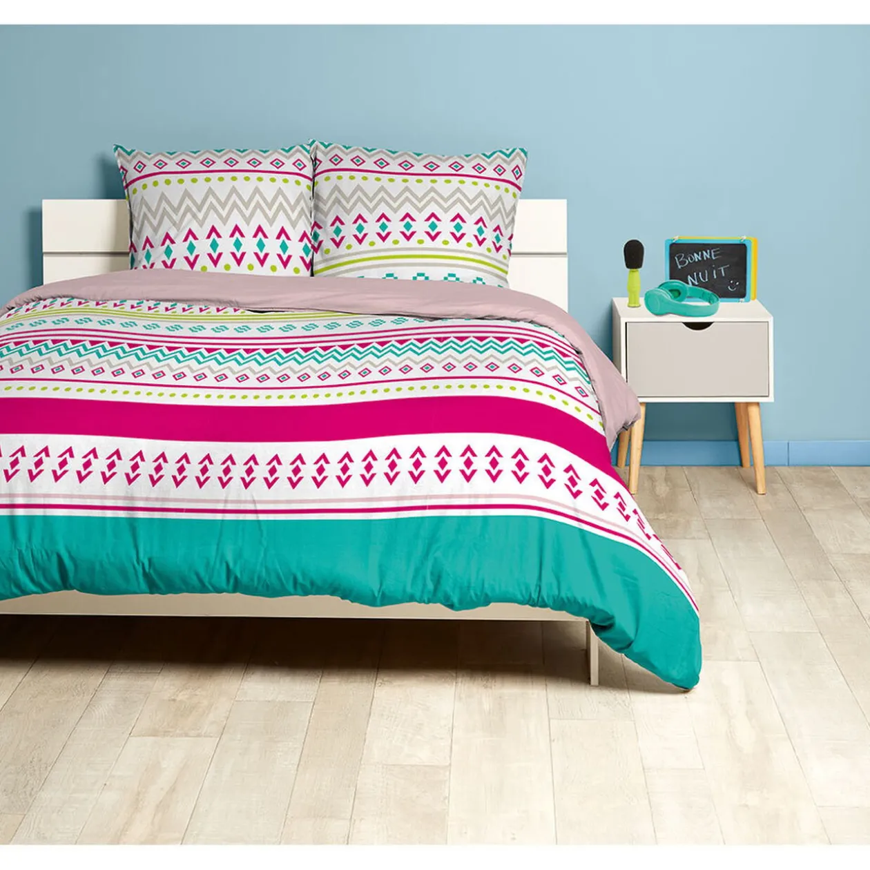Craquez pour cette parure de lit avec imprimé graphique multicolore! Son design coloré et tendance sublimera votre chambre.