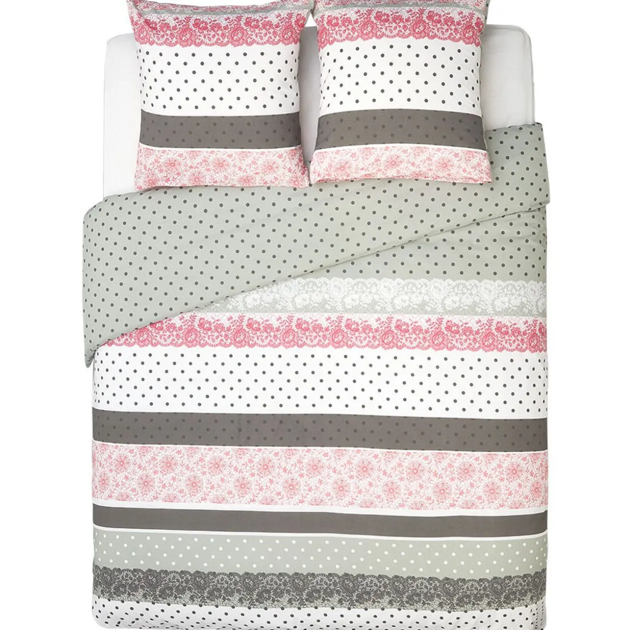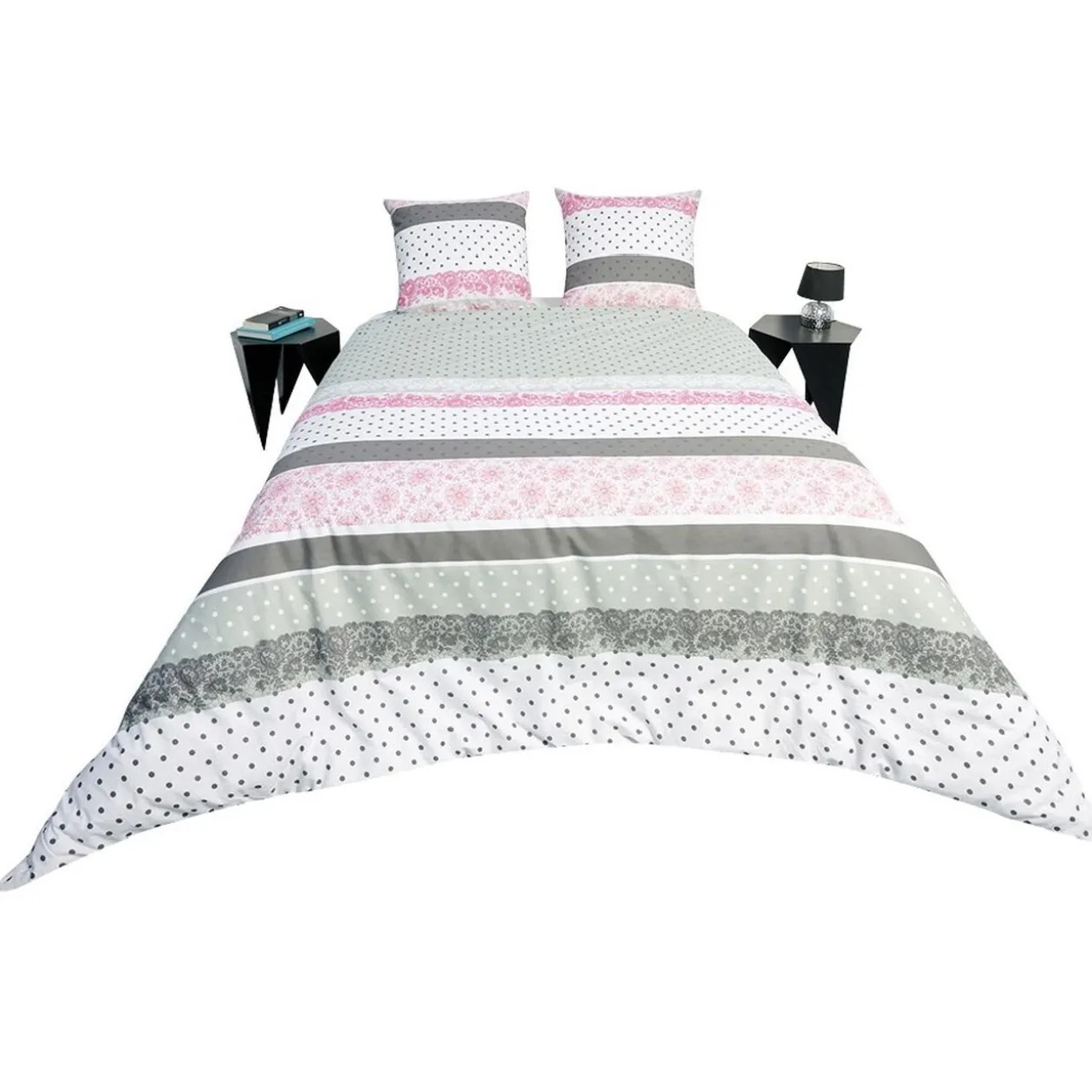 Plaid déco réversible gris bordure rose motif arabesque doux