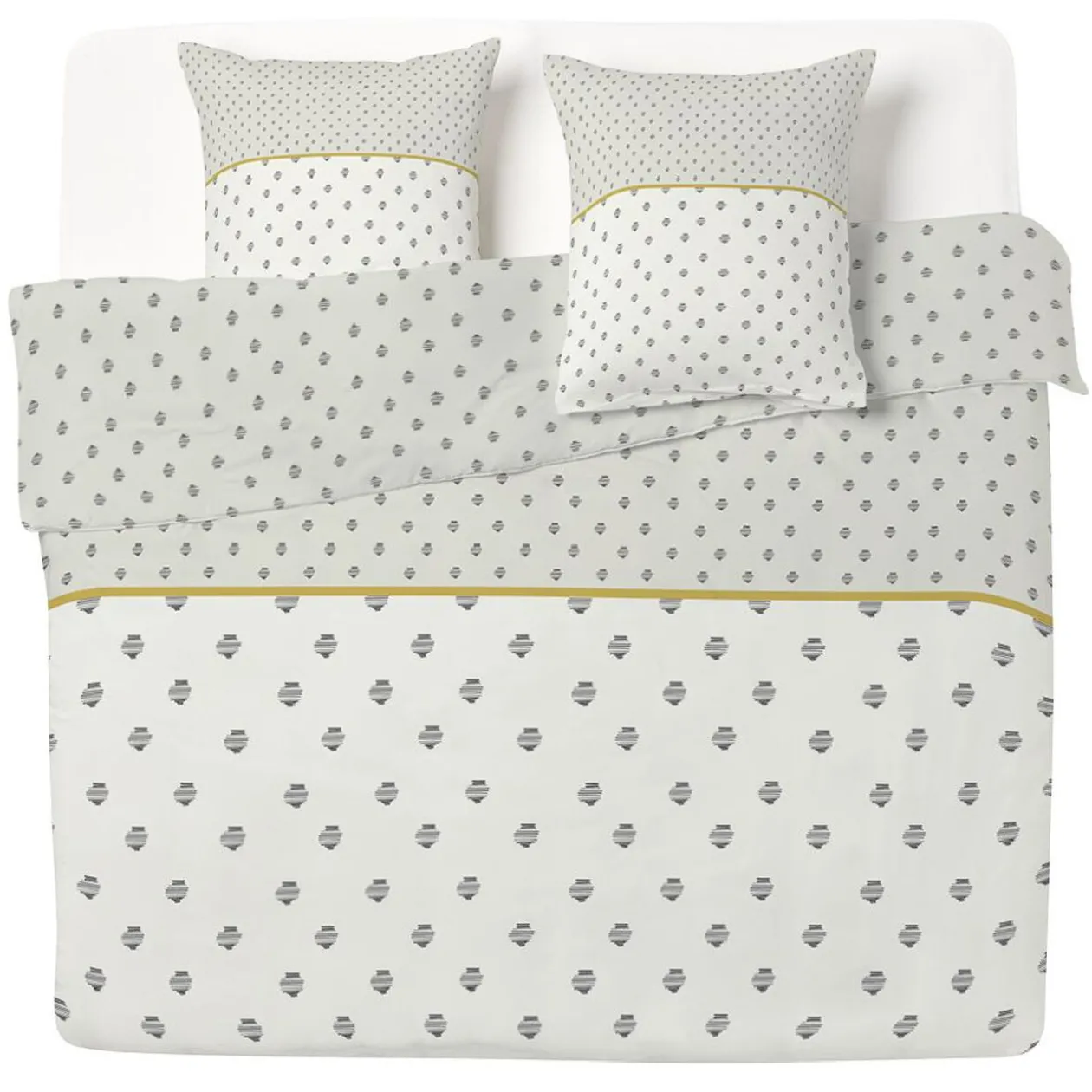 Parure réversible Queen Size en coton motif ethnique pour un lit 2 personnes avec une finition bouton.