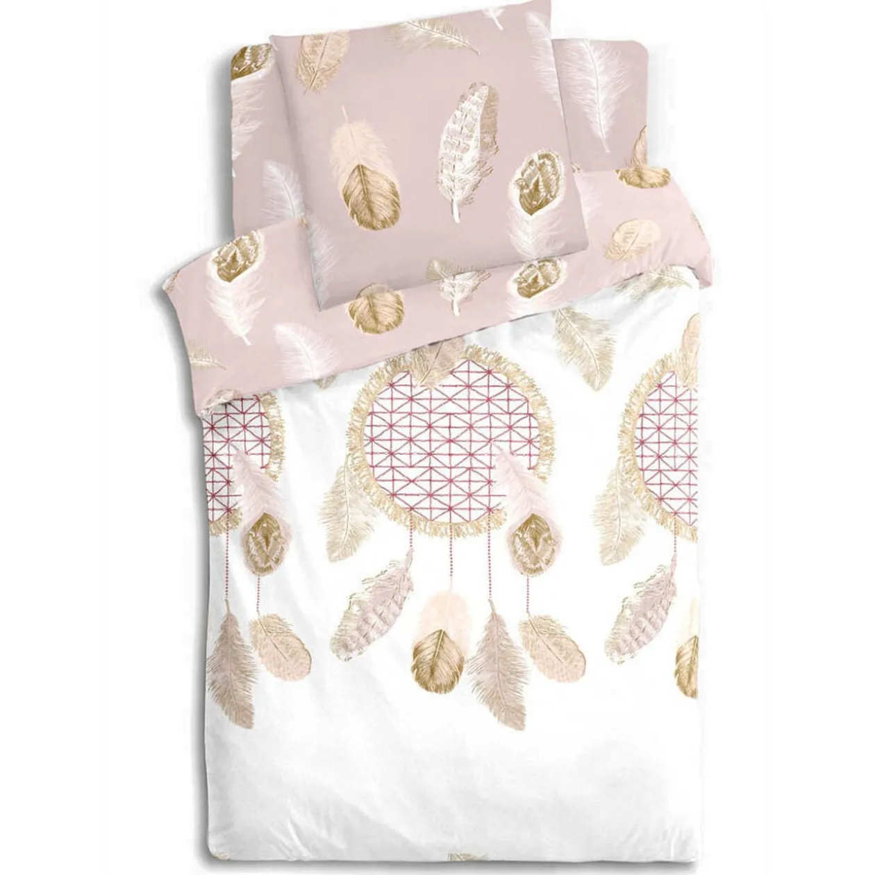 Parure de lit comprenant une housse de couette et une taie d’oreiller.