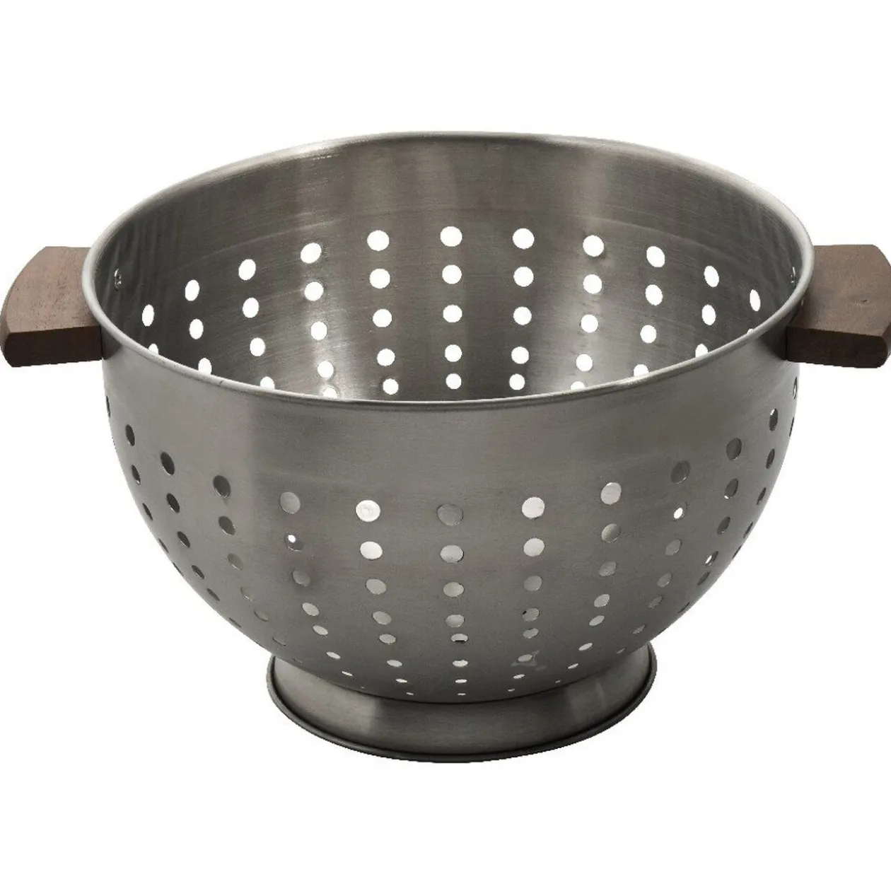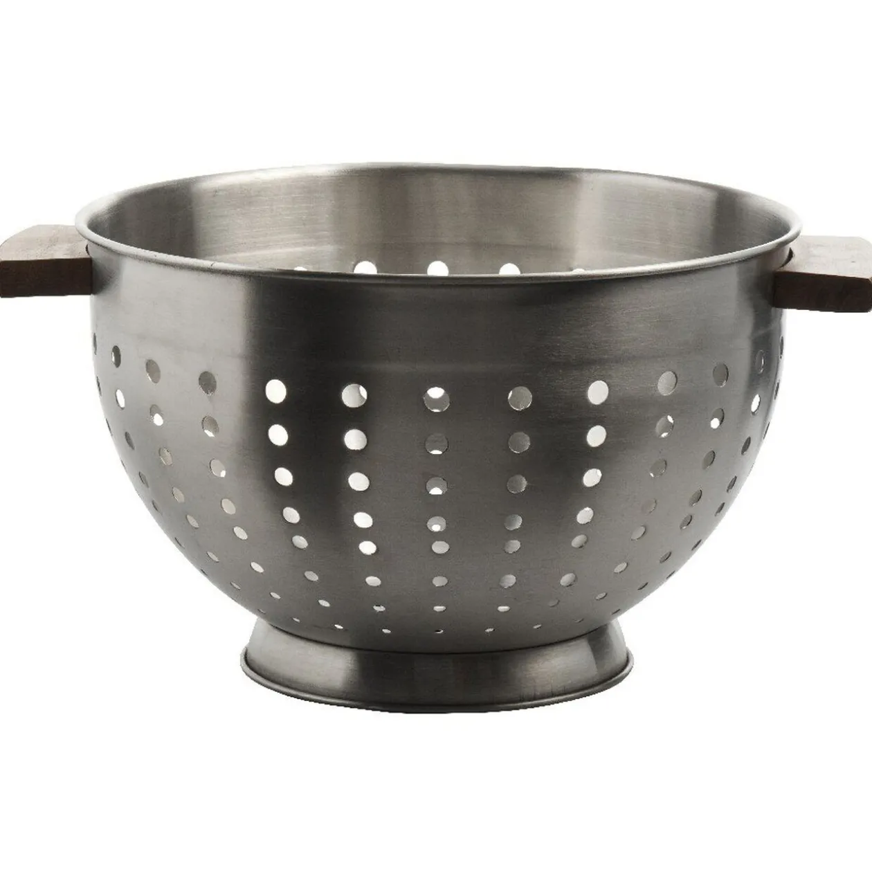Passoire grise en métal avec poignées en pin.