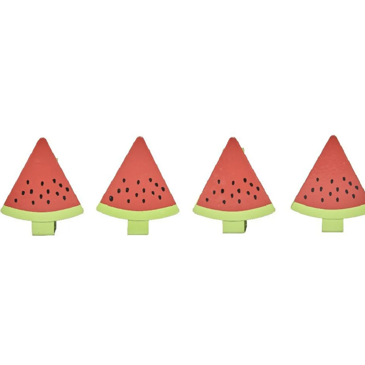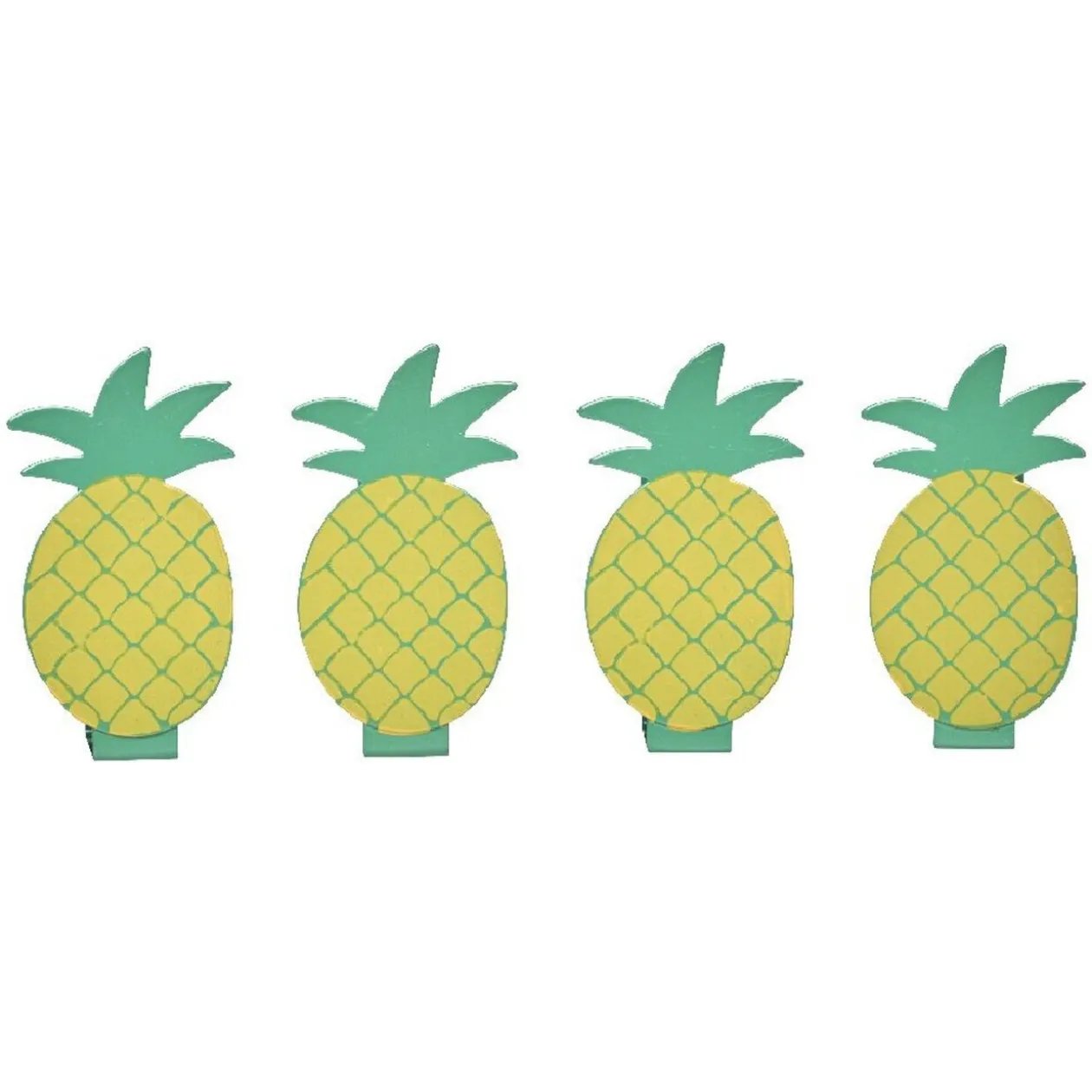 Dans la collection « Sweet exotic »: Lot de 4 pinces nappes en inox motif tropical disponible en 3 designs. Dimension 6 x 4,5 x 4,3 cm.