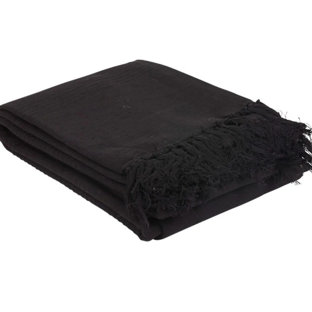 Plaid à franges noir, dim. 170×250 cm, coton.