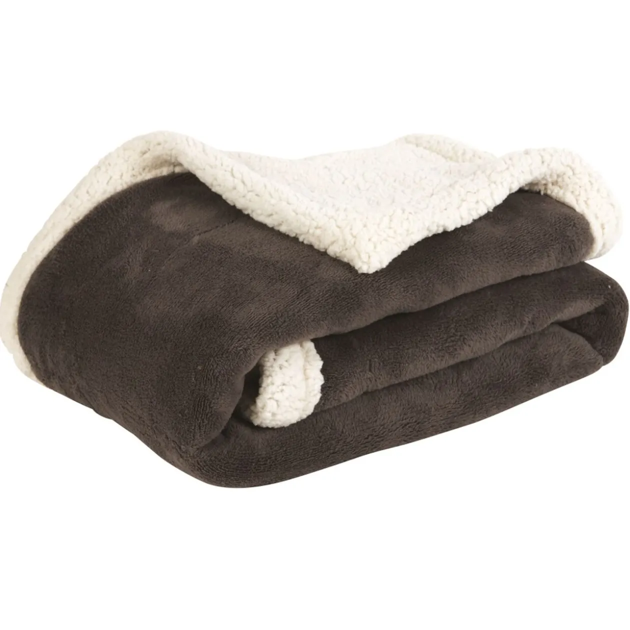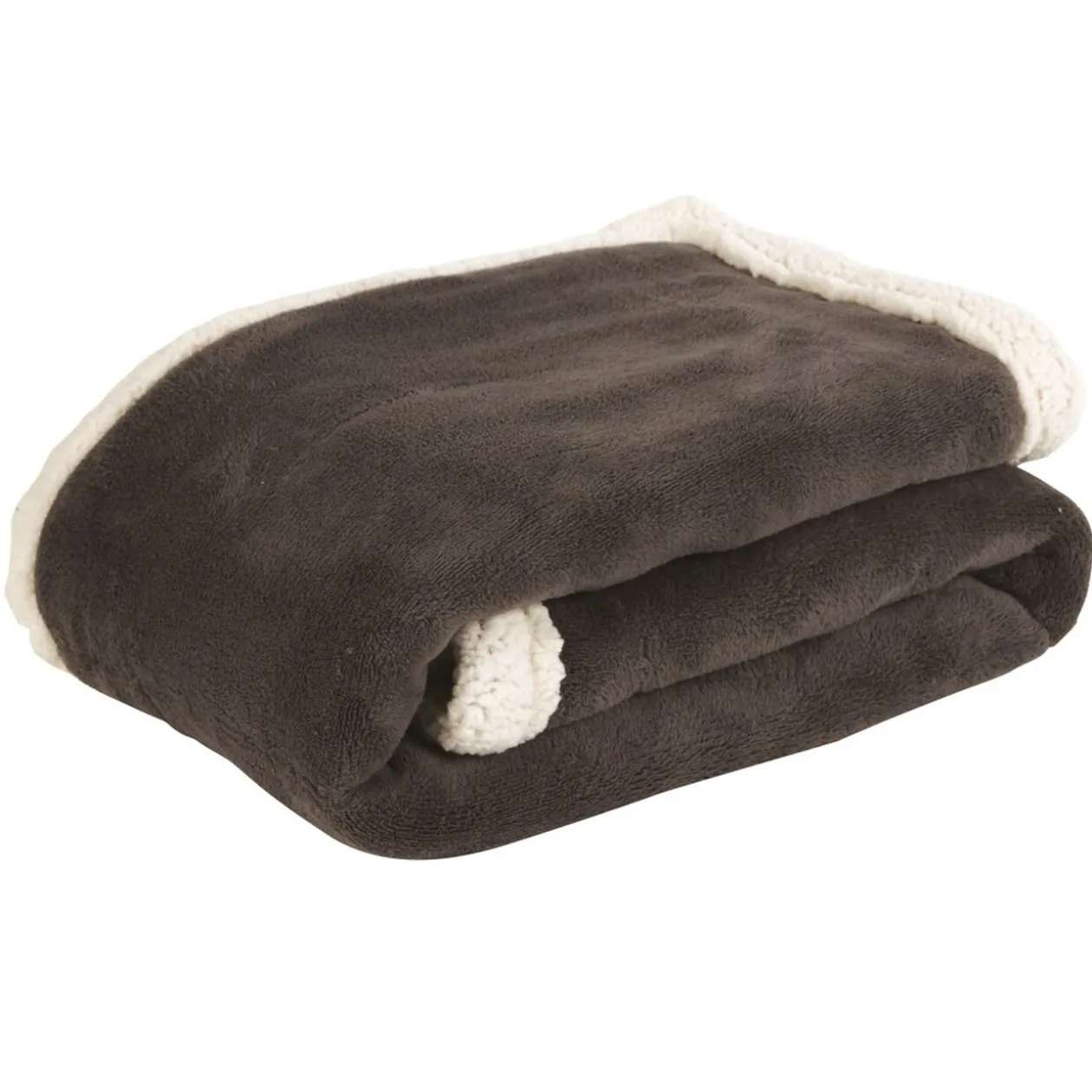 Plaid bi-matière gris, dim. 127×152 cm, polyester microfibre, dos sherpa.