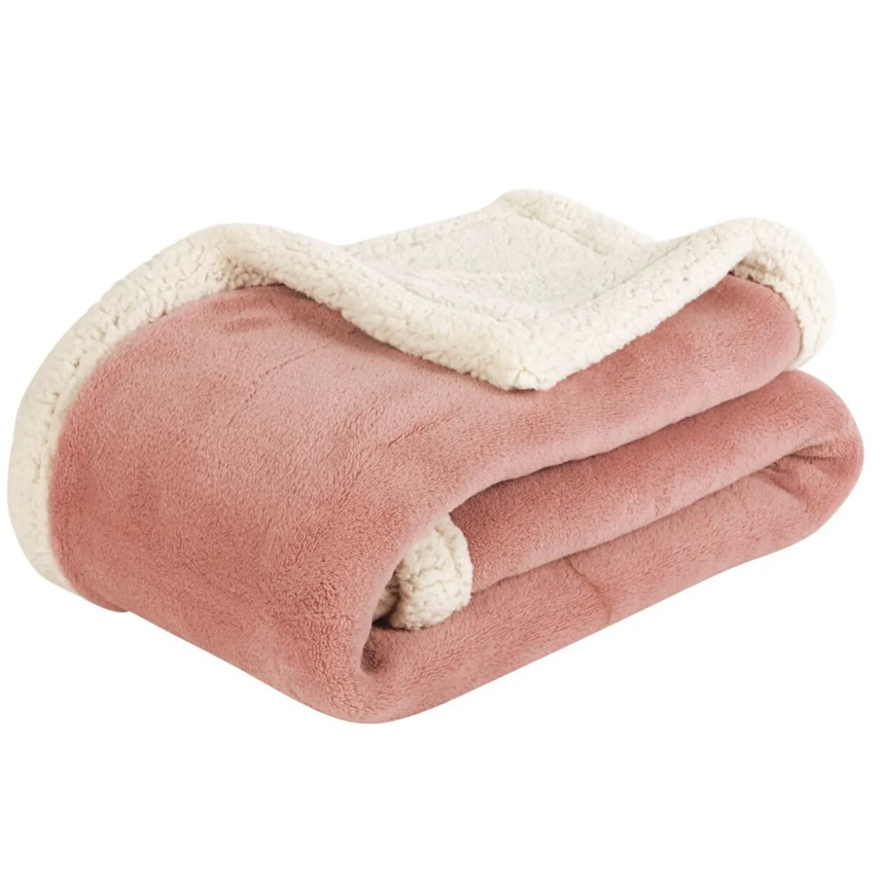 Plaid bi-matière rose, dim. 127×152 cm, polyester microfibre, dos sherpa.