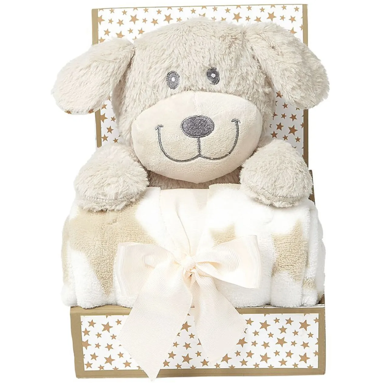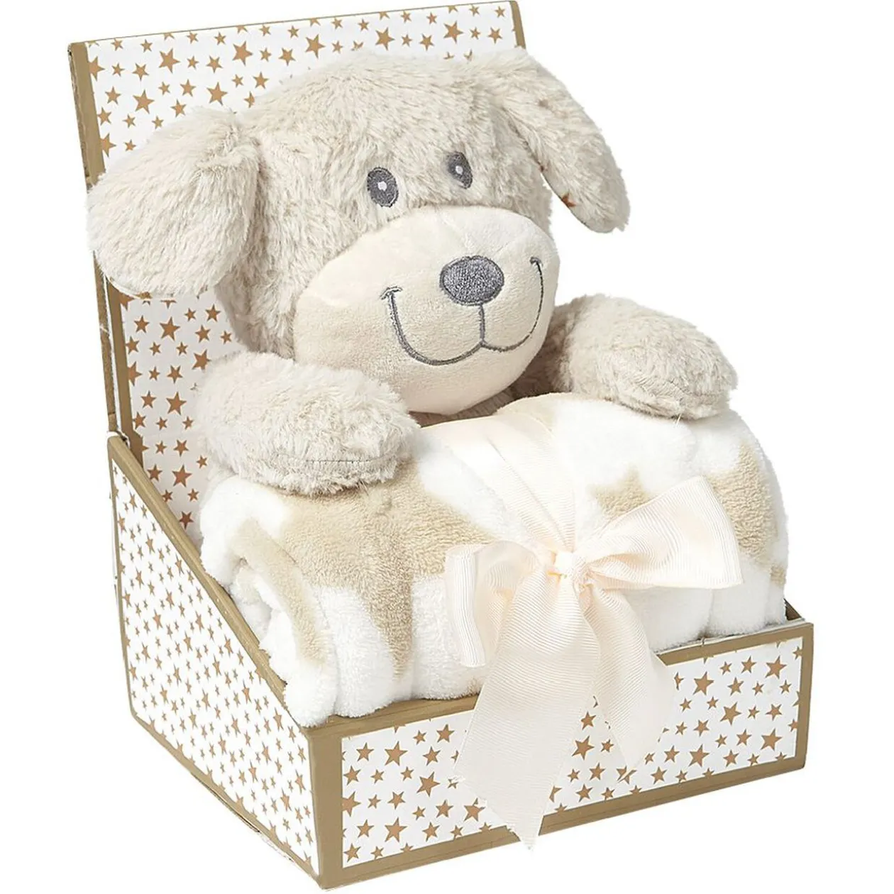 Offrez un peu de douceur à votre enfant avec ce plaid 2en1 de couleur blanche avec étoiles assorties à la peluche.
