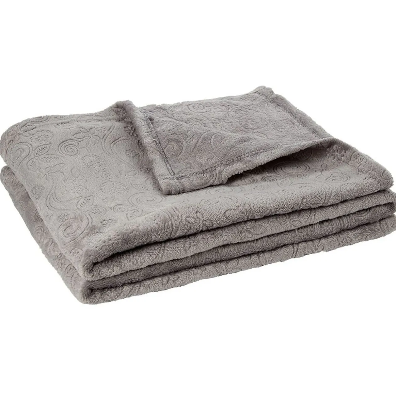 Plaid en polyester gris, idéal pour passer vos soirées bien au chaud.