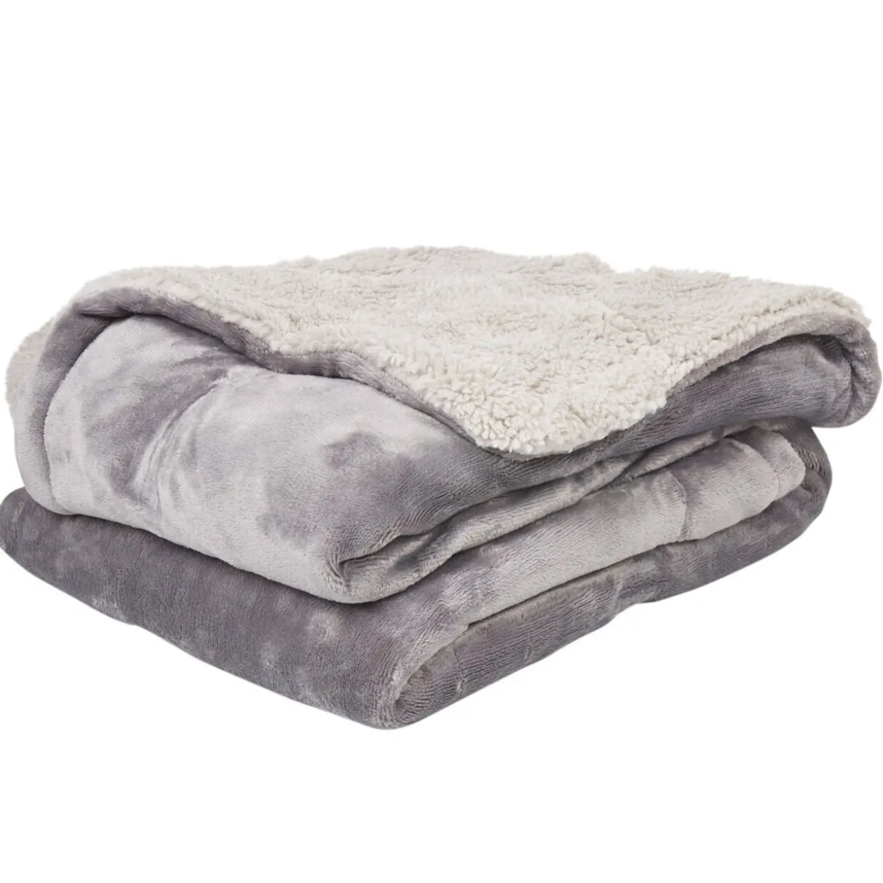 Plaid gris dos polaire blanc, dim. 130×160 cm, polyester.