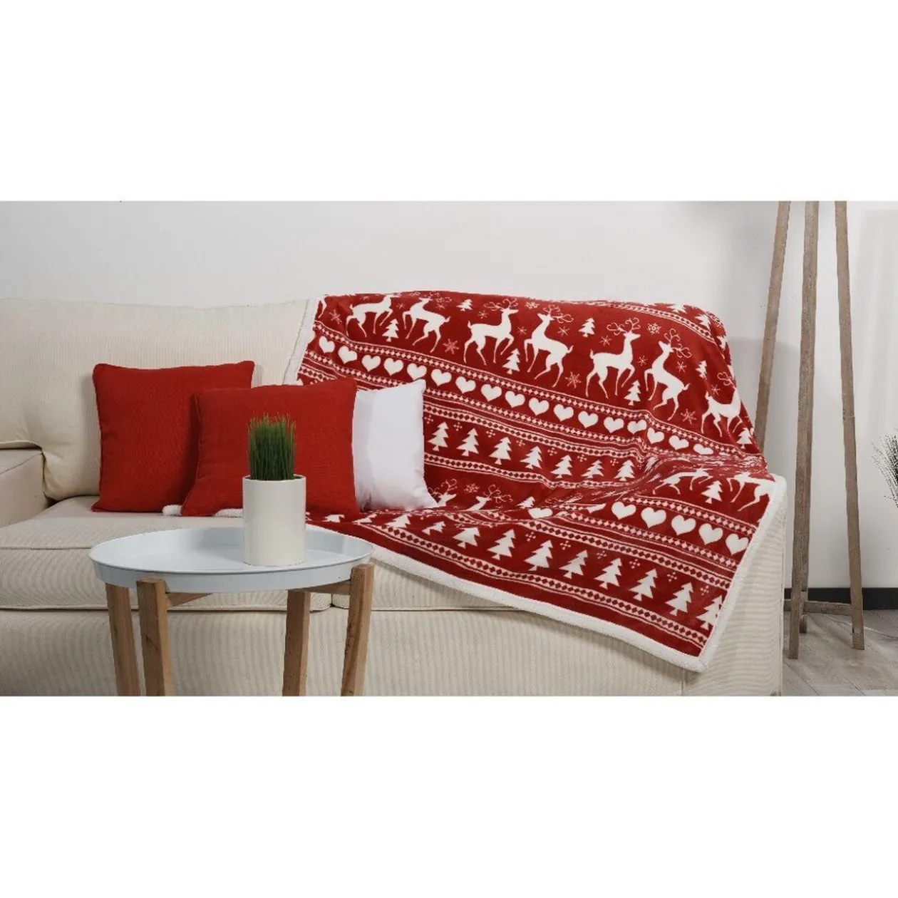 Plaid imprimé déco de Noël de couleur rouge et blanc.