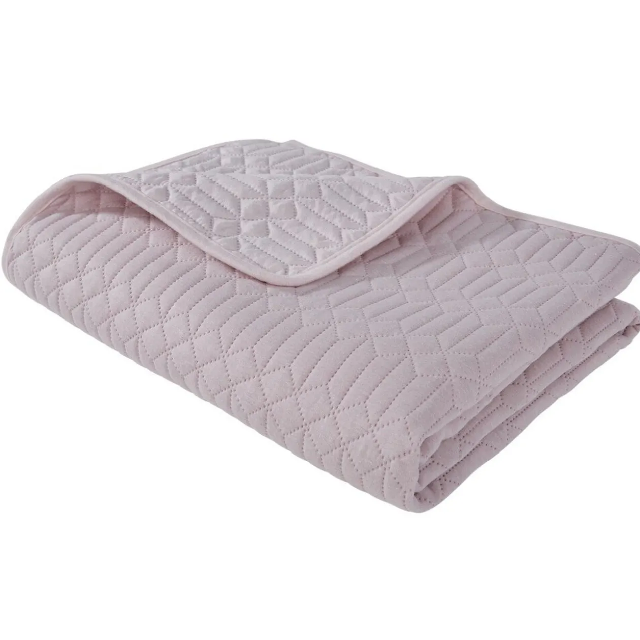 Plaid déco réversible gris bordure rose motif arabesque doux