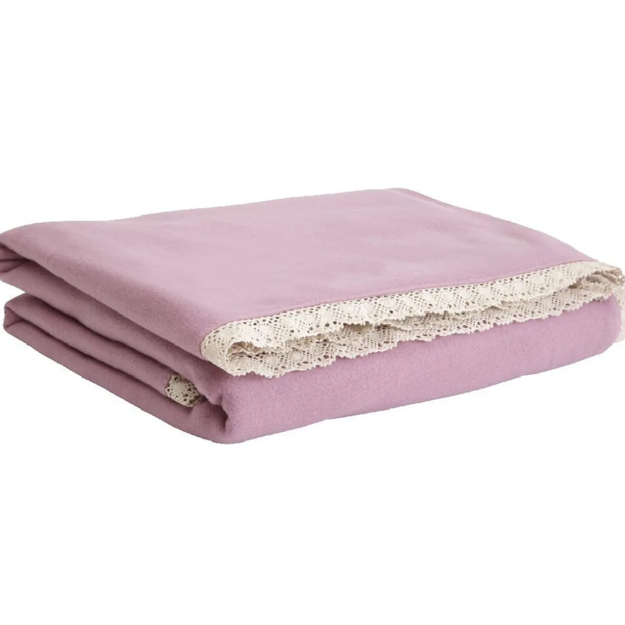 Plaid polaire rose uni avec contour dentelle D&CO, dim. 130×160 cm, polyester.